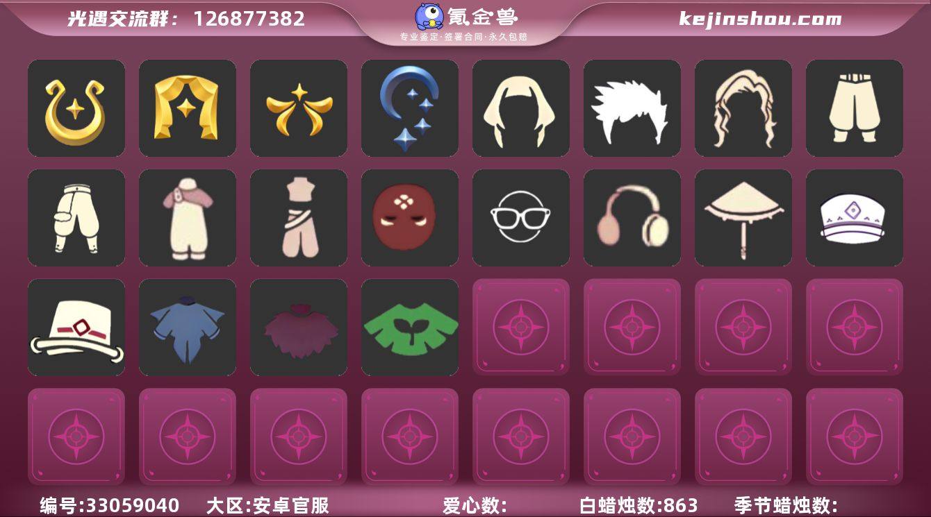 [17452317]账号类型: 手机账号 季节已毕业: 魔法季,表演季,欧若拉季,夜行季,迁徙季 完成地图: 云野,雨林,霞谷,暮土 珍稀物品: 白枭,透明蝶翼斗,魔法季耳坠,咖喱 礼包: 蝙蝠套,巫师,欧若拉之翼,绊爱,大铁头,蜘蛛斗,兔子,南瓜,猫套,猫背饰,彩虹耳钉,彩虹耳机,奥利奥,创始人,向日葵连衣裙 裤子: 武士裤,背带裤,搓澡巾,蓝绿裤 面具: 贴花面具,夜行毕业面具,黄眉企鹅面具 面饰: 红耳机,黑框眼镜 发型: 若笠,虚荣,小王子发型,留辫蘑菇头 头饰: 行军锅头盔,蓝色音乐会,平顶帽 斗篷: 海洋斗,绿芽,粉红绒毛斗篷,燕尾斗篷 配饰: 雨伞,二重奏挂画 亮点: 【优质装备】:魔法季,魔法季耳坠(双边耳坠)(魔法耳坠),咖喱(阿拉丁帽),表演季,白枭(帝企鹅发),武士裤,透明蝶翼斗,欧若拉季(欧若拉),行军锅头盔(六边锅帽子)(双耳锅帽子),夜行季,蓝绿裤(高领舞服),二重奏挂画(合奏挂画),贴花面具(丛林黑面具),夜行毕业面具(棕熊面具),黄眉企鹅面具,黑框眼镜(粗框眼镜),小王子发型,留辫蘑菇头,粉红绒毛斗篷(绒毛斗篷),燕尾斗篷,蝙蝠套(蝙蝠斗篷)(南瓜头),欧若拉之翼,绊爱(绊爱斗篷)(绊爱礼包),猫套(皮皮猫斗)(皮皮猫礼包),红耳机,大铁头,蜘蛛斗(蛛丝斗篷)(蛛网斗篷),巫师(巫师帽),猫背饰(猫咪背饰),彩虹...