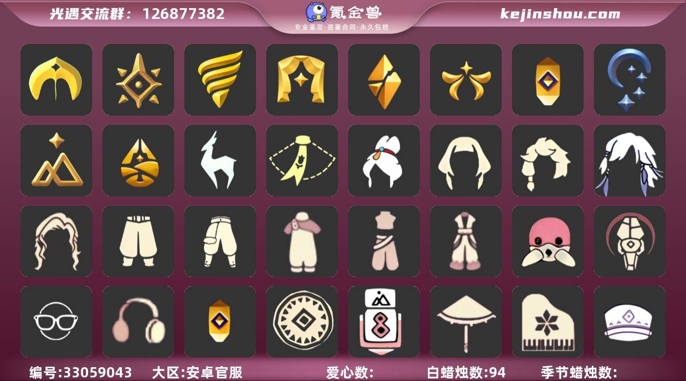 账号类型: 手机账号 季节已毕业: 圣岛季,预言季,潜海季,表演季,破晓季,欧若拉季,夜行季,追忆季,拾光季,归巢季,九色鹿季 完成地图: 晨岛,云野,雨林,霞谷,暮土,禁阁 珍稀物品: 鳐鲲斗篷,阿努比斯(狗头),白枭,透明蝶翼斗,彩虹围巾 礼包: 蝙蝠套,巫师,九色鹿角,绊爱,鹿角,蜘蛛斗,白绒金,橘子,兔子,雪花,彩虹耳钉,四叶草,爱心眼镜,火焰眼镜,新年耳钉 裤子: 武士裤,背带裤,搓澡巾,蓝绿裤,飞天裤 面具: 阿努比斯,呼吸面具,夜行毕业面具,黄眉企鹅面具 面饰: 红耳机,黑框眼镜 项链: 围巾 发型: 归巢毕业发型,若笠,虚荣,单侧绑发,留辫蘑菇头,飞天盘发 头饰: 牛仔帽,蓝色音乐会,平顶帽 斗篷: 海洋斗,绿芽,粉红绒毛斗篷,遥鲲斗篷,燕尾斗篷,冥龙斗篷 配饰: 雨伞,高音钢琴,相机,圆鼓,蓝色手碟,鲲灯 亮点: 【优质装备】:预言季,阿努比斯(狗头),表演季,白枭(帝企鹅发),武士裤,圣岛季,潜海季,破晓季,鳐鲲斗篷,透明蝶翼斗,欧若拉季(欧若拉),归巢毕业发型(五塑彩羽发),高音钢琴(白色高脚钢琴),夜行季,追忆季,牛仔帽(西部帽),相机(季卡相机),拾光季,彩虹围巾(五塑彩带斗),归巢季,九色鹿(九色鹿季),蓝绿裤(高领舞服),飞天裤(柔缎花边连)(九色鹿丝带裤),围巾(肩带),呼吸面具(潜水面具),夜行毕业面...