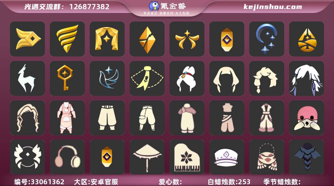 [17745747]账号类型: 邮箱账号 季节已毕业: 风行季,潜海季,表演季,破晓季,欧若拉季,夜行季,追忆季,归巢季,九色鹿季,筑巢季,青鸟季 完成地图: 晨岛,云野,雨林,霞谷,暮土,禁阁 珍稀物品: 白枭,透明蝶翼斗,彩虹围巾 礼包: 蝙蝠套,巫师,绊爱,鹿角,蜘蛛斗,秋千,茶桌,茶壶,白绒金,瑞雪,福娃,小船,吉他,雪花球,橘子,贝壳,红伞,兔子,南瓜,枯角,雪花,水母,猫套,猫背饰,四叶草,小提琴,创始人,青衫落拓礼包,周年影院套餐礼包 裤子: 武士裤,背带裤,搓澡巾,蓝绿裤,飞天裤,筑巢季·裤子 面具: 呼吸面具,夜行毕业面具,黄眉企鹅面具 面饰: 红耳机,青鸟毕业面饰 项链: 围巾 发型: 归巢毕业发型,若笠,虚荣,单侧绑发,留辫蘑菇头,飞天盘发 头饰: 羽毛发饰,蓝色音乐会,平顶帽 斗篷: 海洋斗,绿芽,粉红绒毛斗篷,遥鲲斗篷,燕尾斗篷,冥龙斗篷,青鸟毕业斗篷 配饰: 雨伞,筑巢季·小手办,高音钢琴,二重奏挂画,鲲灯 亮点: 【优质装备】:表演季,白枭(帝企鹅发),武士裤,风行季,潜海季,破晓季,透明蝶翼斗,欧若拉季(欧若拉),归巢毕业发型(五塑彩羽发),羽毛发饰(多羽发饰),筑巢季·小手办(光之子试衣),高音钢琴(白色高脚钢琴),夜行季,追忆季,彩虹围巾(五塑彩带斗),归巢季,九色鹿(九色鹿季),蓝绿裤(高领舞服),飞天裤(...