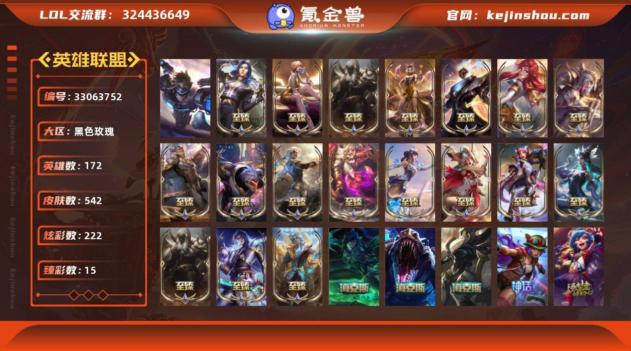 【LDC3146】172英雄/542皮肤/1终极/24神话/84限定/15臻彩/222炫彩/60传说/109史诗/钻石/爱情之歌/觅心之翼奎因/10周年 安妮/十五周年纪念 希维尔/10周年庆典 凤凰/至臻 K/DA 伊芙琳/至臻 双城之战2 指挥官 凯特琳/至臻 天龙之子 伊泽瑞尔/至臻 战斗学院 拉克丝/至臻 青花瓷 拉克丝/至臻 K/DA 阿狸/至臻 神龙尊者均衡之龙 沃利贝尔/至臻 女帝 黛安娜/至臻 星之守护者 辛德拉/至臻 黑夜使者 凯隐/至臻 幻灵战斗猫 金克丝/至臻 源计划:阴 劫/至臻 腥红之月 亚托克斯/至臻 腥红之月 亚托克斯(2022)/至臻 未来战士 锤石/至臻 神凰行者 烈羽焰凰 霞/至臻 源计划:逆流 塞拉斯/至臻 心之钢 永恩/海克斯 雷克顿/摄魂 薇恩/海克斯 人马/天龙之子 卡莎 飞龙乘云/无畏骑士 瑟庄妮 赤子初心/吕布 奉先 炫金战神/墨之影武者 亚索 金墨耀影/南天之怒 沃里克 炫金天神/神龙尊者 圣龙李青 龙腾云起/斗魂觉醒 拉克丝 无限斗志/西部天使 赛娜 贝利尔之怠/泳池派对 辛德拉 荔枝枝连击/破败军团 厄运小姐 灵岛征伐使/可爱可爱粉红红 布里茨/魔女 阿卡丽 虚荣/魔女 阿狸 饕餮/净雪之月 莫甘娜 冬虹/心之钢 伊泽瑞尔 天纵才华/醒狮 克格莫/张辽 文远/南天之怒 沃里克/北辰之威 内瑟斯/春晖神女 拉克...
