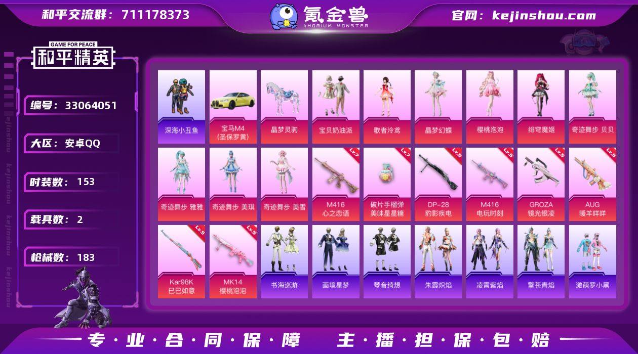 女号小丑鱼主套眼罩安卓 手Q-10粉装-11特效枪-2载具-3粉色飞行器-65274热力值-10王牌印记-153套装-183枪皮 【热门品类】:套装-浪漫天命,套装-深海小丑鱼,套装-暗影哥特,熔岩游骑兵连帽夹克 【粉色套装】:粉装-宝贝奶油派,角色-歌者泠鸢,角色-晶梦幻蝶,角色-樱桃泡泡,角色-绯穹魔姬,角色-奇迹舞步 贝贝,角色-奇迹舞步 雅雅,角色-奇迹舞步 美琪,角色-奇迹舞步 美雪,角色-霁蓝缠春 【粉色枪皮等级】:M416-心之恋语(七级),M416-电玩时刻(五级),GROZA-镜光银凌(五级),AUG-暖羊咩咩(五级),AKS-74U-千仞雪(四级),Kar98K-巳巳如意(五级),Mk14-樱桃泡泡(五级),Mk14-福马献瑞(五级),DP-28-豹影疾电(五级),燃烧瓶-薄荷可可(六级),破片手榴弹-美味星星糖(七级) 【粉色载具】:宝马M4(圣保罗黄),晶梦灵驹 【粉色枪皮】:M416-心之恋语,M416-电玩时刻,GROZA-镜光银凌,AUG-暖羊咩咩,AKS-74U-千仞雪,Kar98K-巳巳如意,Mk14-樱桃泡泡,Mk14-福马献瑞,DP-28-豹影疾电,燃烧瓶-薄荷可可,破片手榴弹-美味星星糖 【粉色飞行器】:炫彩糖果飞行器,梦幻火箭飞行器,灵猫魔法师飞行器 【粉色降落伞】:暗夜玫瑰降落伞,圣堂之誓降落伞,猪猪侠降落伞,千金淑猫降...