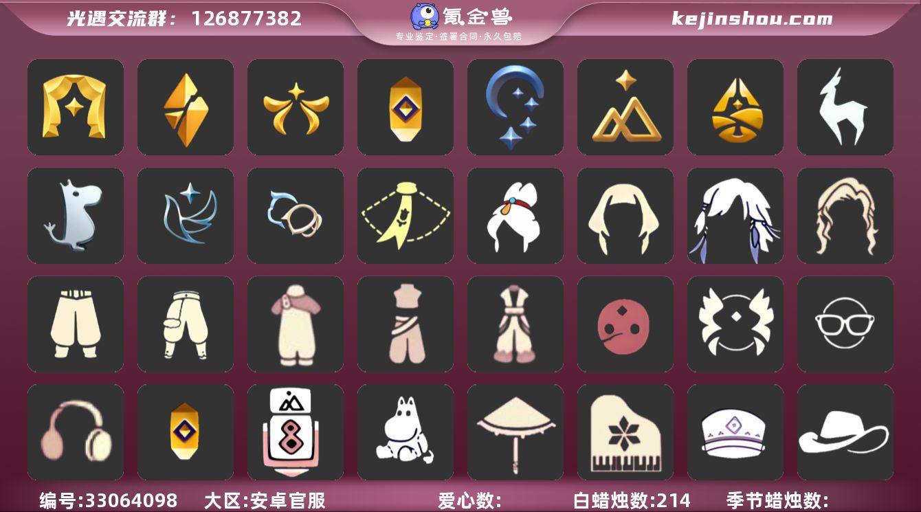 [18039909]账号类型: 邮箱账号 季节已毕业: 表演季,破晓季,欧若拉季,夜行季,追忆季,拾光季,归巢季,九色鹿季,姆明季,青鸟季,双星季 完成地图: 云野,雨林,霞谷,暮土,禁阁 珍稀物品: 白枭,透明蝶翼斗,彩虹围巾 礼包: 蝙蝠套,巫师,欧若拉之翼,九色鹿角,音乐桌,绊爱,大铁头,茶壶,福娃,红伞,兔子,枯角,彩虹耳机,新年裤,四叶草,伯爵斗篷,衔福献瑞礼包,献瑞折扇礼包,小狗周年发饰,青衫落拓礼包,线框斗篷礼包 裤子: 武士裤,背带裤,搓澡巾,妮妮裙子,蓝绿裤,飞天裤 面具: 裂纹面具,夜行毕业面具,黄眉企鹅面具 面饰: 红耳机,黑框眼镜,青鸟毕业面饰 项链: 围巾 发型: 归巢毕业发型,若笠,虚荣,留辫蘑菇头,飞天盘发 头饰: 牛仔帽,蓝色音乐会,平顶帽 斗篷: 海洋斗,绿芽,粉红绒毛斗篷,遥鲲斗篷,燕尾斗篷,冥龙斗篷,青鸟毕业斗篷 配饰: 雨伞,高音钢琴,姆明抱枕,小红伞,相机,鲲灯 亮点: 【优质装备】:表演季,白枭(帝企鹅发),武士裤,破晓季,透明蝶翼斗,欧若拉季(欧若拉),归巢毕业发型(五塑彩羽发),高音钢琴(白色高脚钢琴),夜行季,追忆季,妮妮裙子(妮妮长裙),牛仔帽(西部帽),姆明抱枕,小红伞(姆明红伞)(姆明大伞),相机(季卡相机),拾光季,彩虹围巾(五塑彩带斗),归巢季,九色鹿(九色鹿季),蓝绿裤(高领舞...