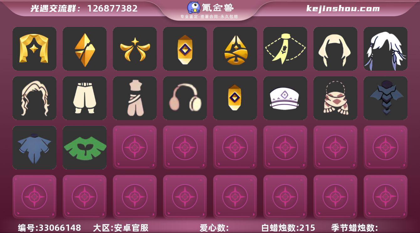 [18147401]账号类型: 邮箱账号 季节已毕业: 表演季,破晓季,欧若拉季,追忆季,归巢季 完成地图: 暮土 珍稀物品: 白枭,透明蝶翼斗,彩虹围巾 礼包: 贝壳,兔子,猫套,星月头饰,彩虹耳机,四叶草 裤子: 武士裤,蓝绿裤 面具: 黄眉企鹅面具 面饰: 红耳机 项链: 围巾 发型: 归巢毕业发型,若笠,虚荣,留辫蘑菇头 头饰: 平顶帽 斗篷: 海洋斗,绿芽,遥鲲斗篷,燕尾斗篷,冥龙斗篷 配饰: 鲲灯 亮点: 【优质装备】:表演季,白枭(帝企鹅发),武士裤,破晓季,透明蝶翼斗,欧若拉季(欧若拉),归巢毕业发型(五塑彩羽发),追忆季,彩虹围巾(五塑彩带斗),蓝绿裤(高领舞服),围巾(肩带),留辫蘑菇头,燕尾斗篷,鲲灯(追忆之书),红耳机,墓土(暮土),若笠(箬笠),归巢季,黄眉企鹅面具,遥鲲斗篷(双翼遥鲲斗),冥龙斗篷,猫套(皮皮猫斗)(皮皮猫礼包),彩虹耳机,星月头饰(星月头冠),兔子(玉兔头饰)(玉兔发饰)(兔子发饰),贝壳(贝壳发饰),四叶草(四叶草头饰)