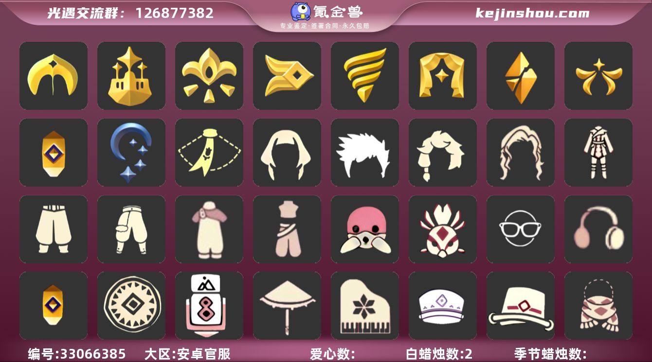 账号类型: 手机账号 季节已毕业: 圣岛季,梦想季,风行季,潜海季,表演季,破晓季,欧若拉季,集结季,夜行季,追忆季 完成地图: 晨岛,云野,雨林,霞谷,暮土,禁阁 珍稀物品: 鳐鲲斗篷,白枭,透明蝶翼斗 礼包: 蝙蝠套,巫师,围巾,欧若拉之翼,绊爱,鹿角,蜘蛛斗,牛仔裤,兔子鞋,秋千,茶壶,白绒金,瑞雪,福娃,跷跷板,吉他,灯笼,人声乐器,奔跑发型,彩虹帽,雪花球,橘子,贝壳,红伞,兔子,南瓜,枯角,雪花,星月头饰,彩虹耳机,新年裤,奥利奥,暗彩装扮,爱心眼镜,透明蛛丝,雪人鞋,创始人,恶作剧飞行扫帚,小狗周年发饰,风之旅人白袍,青衫落拓礼包,冥龙套装礼包,云音伴游耳机 裤子: 武士裤,背带裤,搓澡巾,蓝绿裤,风行毕业裤子 面具: 凤凰面具,呼吸面具,夜行毕业面具,黄眉企鹅面具 面饰: 红耳机,黑框眼镜 项链: 围巾 发型: 若笠,虚荣,单侧绑发,小王子发型,留辫蘑菇头 头饰: 行军锅头盔,羽毛发饰,蓝色音乐会,平顶帽 斗篷: 海洋斗,蟑螂斗,绿芽,粉红绒毛斗篷,遥鲲斗篷,黄色连帽披风,燕尾斗篷,冥龙斗篷,领主红斗篷,瑞雪斗篷 配饰: 雨伞,高音钢琴,相机,蓝色手碟,鲲灯 亮点: 【优质装备】:表演季,白枭(帝企鹅发),武士裤,圣岛季,梦想季,风行季,潜海季,破晓季,鳐鲲斗篷,透明蝶翼斗,欧若拉季(欧若拉),行军锅头盔(六边...