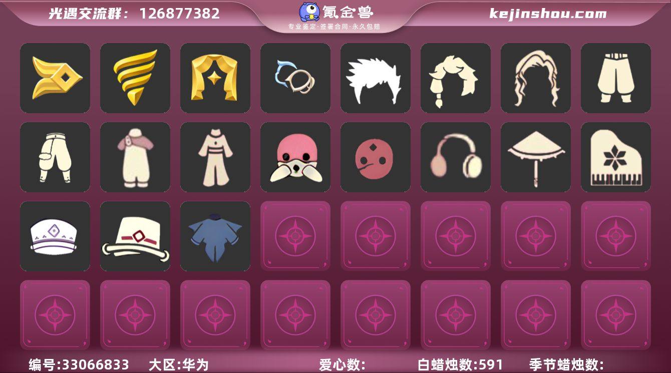 账号类型: 手机账号 季节已毕业: 风行季,潜海季,表演季,双星季,织光季 完成地图: 晨岛,云野,雨林,霞谷,暮土 珍稀物品: 白枭 礼包: 蝙蝠套,巫师,绊爱,鹿角,兔子鞋,茶桌,白绒金,瑞雪,吉他,橘子,贝壳,兔子,南瓜,雪花,水母,猫套,四叶草,透明蛛丝,心心相印发饰礼包,活力海牛礼包 裤子: 武士裤,背带裤,搓澡巾,王子服 面具: 裂纹面具,呼吸面具,黄眉企鹅面具 面饰: 红耳机 发型: 若笠,虚荣,单侧绑发,小王子发型 头饰: 行军锅头盔,羽毛发饰,蓝色音乐会,平顶帽 斗篷: 海洋斗,黄色连帽披风,燕尾斗篷 配饰: 雨伞,高音钢琴 亮点: 【优质装备】:表演季,白枭(帝企鹅发),武士裤,风行季,潜海季,行军锅头盔(六边锅帽子)(双耳锅帽子),羽毛发饰(多羽发饰),高音钢琴(白色高脚钢琴),王子服(小王子套装),呼吸面具(潜水面具),黄眉企鹅面具,单侧绑发(单边小辫),小王子发型,黄色连帽披风(连帽斗篷)(斜边队长斗篷),燕尾斗篷,双星季,蝙蝠套(蝙蝠斗篷)(南瓜头),绊爱(绊爱斗篷)(绊爱礼包),茶桌(花憩茶桌),猫套(皮皮猫斗)(皮皮猫礼包),红耳机,鹿角(圣诞鹿角),瑞雪(瑞雪斗篷)(暖冬瑞雪),吉他(音韵吉他)(白吉他),透明蛛丝(透明蜘蛛斗),巫师(巫师帽),白绒金(白雪斗篷),晨岛,云野,雨林,霞谷,墓土(暮土),若笠(箬笠)...