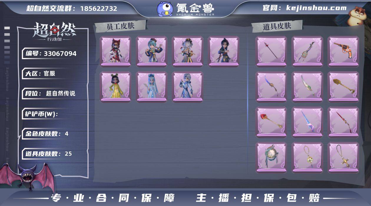 【948071】红色皮肤数量: 1 金色皮肤数量: 4 紫色皮肤数量: 10 道具皮肤数量: 25 段位: 超自然传说 外观: 冰公主,青云逸歌,嘻嘻头套,烈焰红唇头套,呆滞头套,卑微头套,哈士奇头套,滑稽头套,鱼头怪头套,面具马头套,萨卡班甲鱼头套,小狗蛇点点头套,天使的呼唤,蝶恋花,天使消失的年代,钗头凤,呱呱雨衣,绣春逍影,迷途僵宝,除妖小师妹,梵音莲华,九色祥鹿,火爆了头套,精致露比头套,莓果陷阱,潮汐小海兔,樱桃奶油布丁,暗夜小恶魔,千夜星谕,雪墩墩头套,太空鲨头套,尘封旧事,耀眼的你,庆宴绮愿,烛光纪念,不朽的今夜,牛啤背包,园丁鲨鲨头套