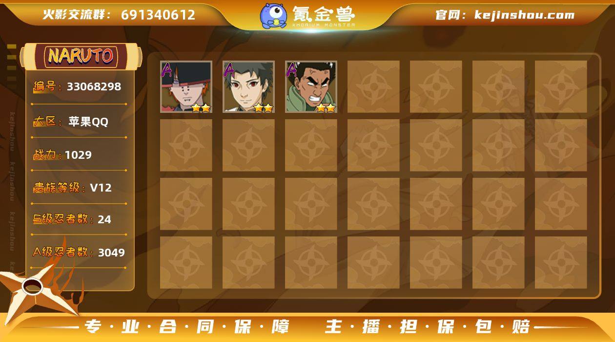 [18280028]V12 24S忍 3049A忍 18通灵 1029.2W战力 可二次 可修改实名 【S级忍者】宇智波斑「秽土转生·解」,宇智波佐助「永恒万花筒」,漩涡鸣人 「九喇嘛连结」,宇智波斑 「木叶创立」,宇智波带土 「忍界大战」,自来也 「舞之豪杰」,波风水门「九喇嘛连结」,漩涡鸣人·宇智波佐助,宇智波鼬「秽土转生」,药师兜「仙人模式」,宇智波斑「秽土转生」,宇智波斑「白面具」,千手扉间「秽土转生」,纲手「百豪」,波风水门「秽土转生」,金角/银角「秽土转生」,猿飞日斩「秽土转生」,宇智波斑,宇智波鼬 「须佐能乎」,佩恩「天道」,猿飞日斩,波风水门,大蛇丸,纲手 【通灵兽】熊猫
