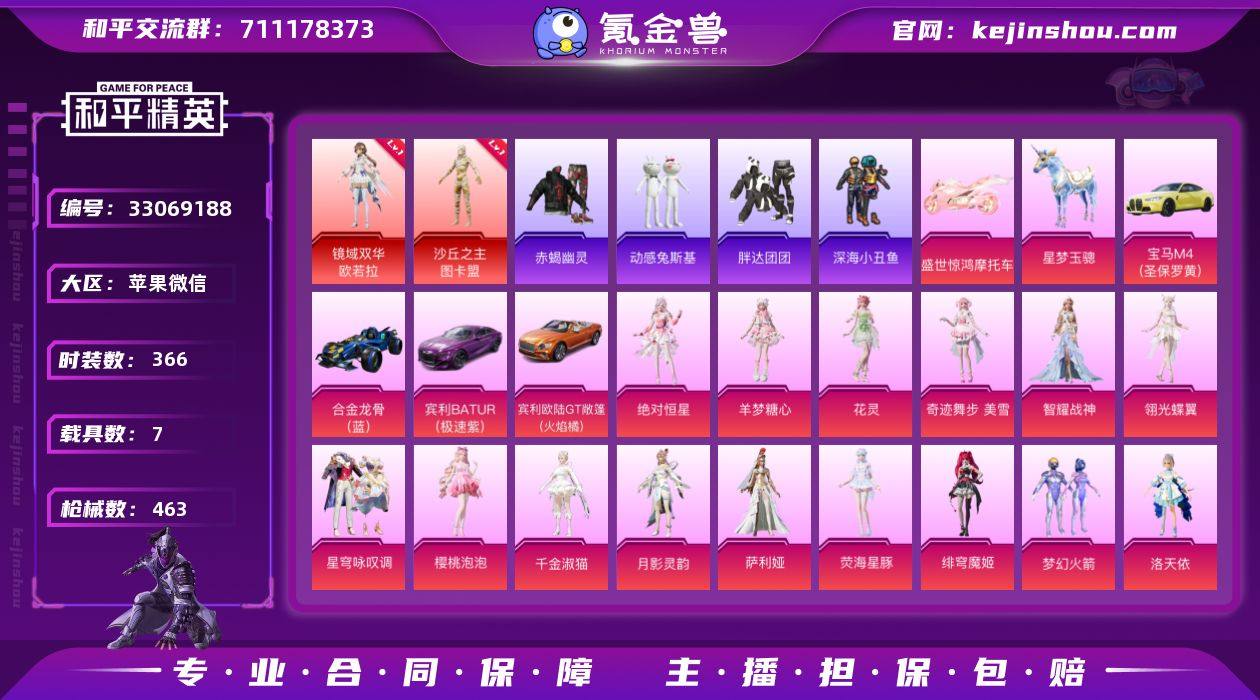 无敌战神框 2红装 49粉装 36粉枪 7载具 3稀有装备 366套装 463枪皮 67热门 合金龙骨(蓝) 路特斯ELETRE(花绽灰) 宾利BATTUR(极速紫) 宾利欧陆GT敞篷(火焰橘) 僚机-萌兔起飞 星梦玉骢 宝马M4(圣保罗黄) 盛世惊鸿摩托车 赤蝎幽灵 巡查衣 沙丘之主-图卡盟 镜域双华-欧若拉 稀有紫装-赤蝎幽灵 冷酷挑战者(稀有紫装) 怪诞乔克(小丑) 角色-初号机 觉醒Ver. 放客神游 糯粉咩咩 软软马卡龙 稀有紫装--巡查衣 梦幻火箭 雪国幻梦(冰雪女王) 宝贝奶油派 天使彩虹糖 甜心巧克力 缤纷油彩(猪脸妹) 洛天依 蜜桃特工 星之彼岸 彩虹甜喵 冰川粉黛 冰川红玫 恐龙拽拽 蝶舞迷情 垂柳戏鸭 绝对恒星 璀璨流光 源星混沌 幻彩战盾 快乐星愿 星梦畅游 幻羽潜行 玲珑飞花 空投萌叽 极速竞梦 炫蓝之夏 萌黄之夏 猎梦纪元 圣诞惊喜 黄色名流 牛气满满 天籁歌者 电音精灵 耀粉歌者 苍岚星 星夜迷魅 飞行日记 熠彩粉晶 摩登艾咪 飞狐塔尔斯 莱茵河畔 摇滚战魂 福星高照 神气柴柴 白兰地假日 甜梦熊熊 幻彩翩翩 柠萌假日 王牌教练 白啸长虹 青玉碎影 缤纷假日 雪兔飞飞 沁蓝冰爽 双彩绵绵 飞驰魅影 华灯初上 龟仙人 音速流光 日照花林 果汁能量 粉团憨憨 涂山之恋 冷焰舞者 爆裂葡萄 空岛之星...