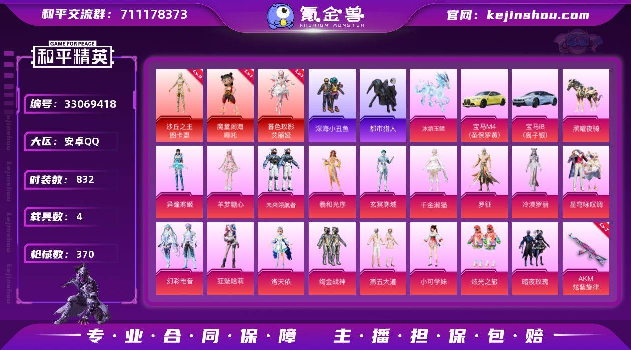DB4376-安Q-可改实名可转区-18印记-地铁满天赋-3红装17粉装23特效枪4载具-连体王者贵八450皮2典藏30传说3星传说-沙丘之主图卡盟3级 暮色玫影艾丽娅1级 魔童闹海哪吒1级-狂魅哈莉 洛天依-都市 螳螂副套 哥特 深海小丑鱼 浪漫天命-AKM暮色玫影3级 P90魔童闹海敖丙3级 SCAR-L魔童闹海哪吒3级-冰绡玉鳞 宝马M4 宝马i8 安卓手Q-18王牌印记-3红装-17粉装-23特效枪-4载具-热力值-229套装-370枪皮-2卓越印记-1传奇印记 【3红装】魔童闹海-哪吒/1级,沙丘之主-图卡盟/3级,暮色玫影-艾丽娅/1级 【17粉装】套装-第五大道,角色-洛天依,套装-幻彩电音,角色-羲和光序,套装-绚金战神,角色-小可学妹,套装-星穹咏叹调,角色-玄冥寒域,套装-未来领航者,角色-羊梦糖心,角色-狂魅哈莉,套装-炫光之旅,角色-异瞳寒姬,角色-罗征,角色-千金淑猫,角色-冷漠罗丽,套装-暗夜玫瑰 【23特效枪】Mk14-甜梦熊击/5级,AKM-暮色玫影/3级,M416-风花雪月/7级,DP-28-千金淑猫/6级,MG-36-幻彩电音/5级,DP-28-豹影疾电/5级,AKM-炫紫旋律/7级,AKM-绿萝繁花/5级,汤姆逊-热量炸弹/5级,AUG-罪夜之冕/6级,AUG-暖羊咩咩/5级,GROZA-镜光银凌/5级,P90-魔童闹海 敖丙/3级,M762-青锋波束/5级,AUG-星之彼岸/1级,SCAR-L-锦绣绵绵/5级,...