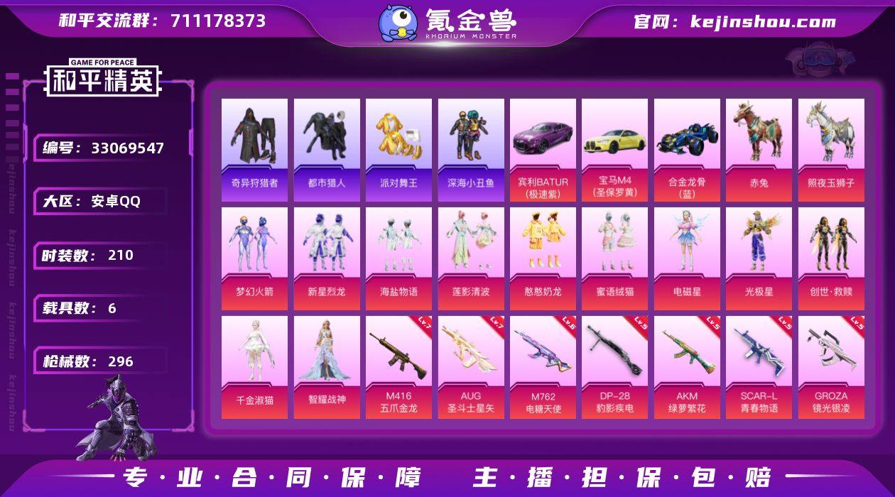 金鞋都市巡查衣满级地铁安卓 手Q-13粉装-16特效枪-6载具-6粉色飞行器-100293热力值-15王牌印记-210套装-296枪皮 【热门品类】:粉装-梦幻火箭,绝对防御上衣,套装-浪漫天命,套装-都市猎人,套装-派对舞王,套装-深海小丑鱼,套装-奇异狩猎者,角色-军刀雅典娜,角色-忠猛周仓,角色-忠真马岱,角色-忠义严颜,套装-龟仙人,角色-8号机,角色-Mark.06,大砍刀-青龙偃月刀,撬棍-龙胆亮银枪 【粉色套装】:粉装-梦幻火箭,粉装-新星烈龙,粉装-海盐物语,粉装-莲影清波,粉装-憨憨奶龙,粉装-蜜语绒猫,角色-电磁星,角色-光极星,套装-创世·救赎,角色-千金淑猫,角色-智耀战神,人物-小舞·灵珑,角色-千仞雪 【粉色枪皮等级】:AKM-绿萝繁花(五级),SCAR-L-青春物语(五级),M416-五爪金龙(七级),GROZA-镜光银凌(五级),AUG-暖羊咩咩(五级),AUG-圣斗士星矢(七级),M762-电糖天使(六级),UMP45-量子极限(五级),Vector-飒粉甜心(五级),AKS-74U-森灵之息(五级),Kar98K-创世·救赎(三级),Kar98K-巳巳如意(五级),Mk14-甜梦熊击(五级),Mk14-福马献瑞(五级),M249-猪猪侠(五级),DP-28-豹影疾电(五级) 【粉色载具】:宾利BATUR(极速紫),宝马M4(圣保罗黄),合金龙骨(蓝...