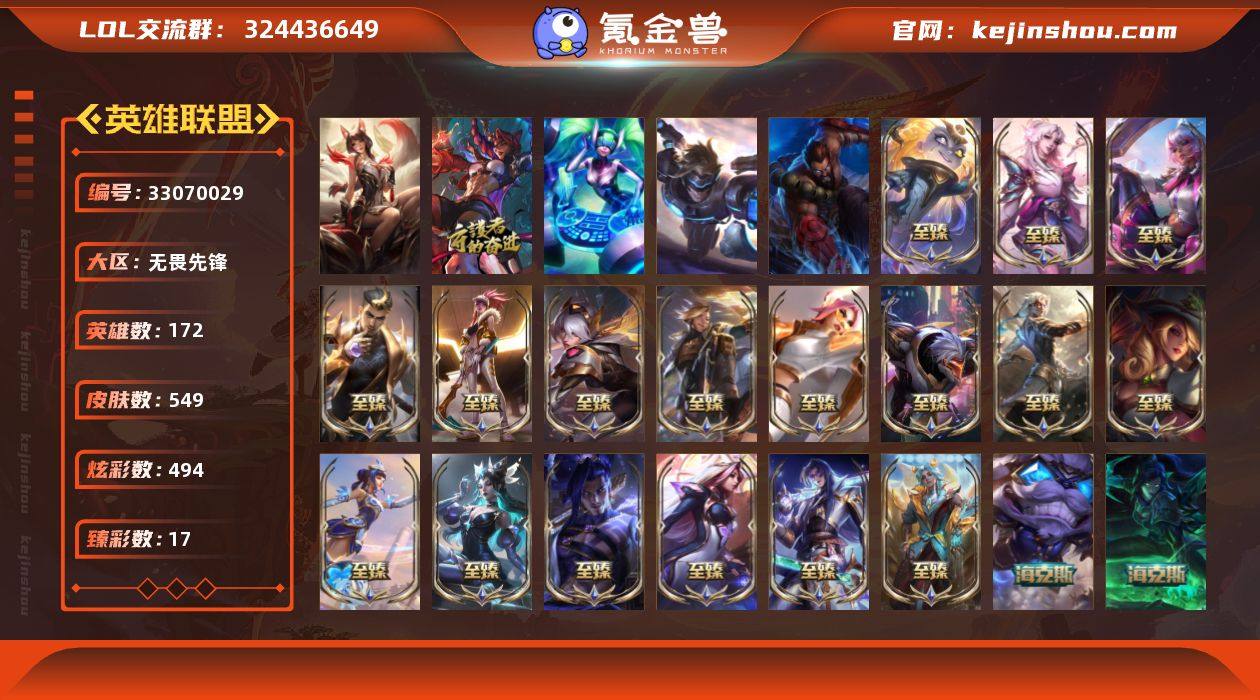 t39185【无畏先锋】殿堂传奇阿狸 549皮肤 494炫彩 17臻彩 27神话/125限定/55传说/172英雄 账号等级:828 单双排段位:翡翠 【重要头像】觅心之翼奎因 基斯 星守辛德拉炫彩 灵魂莲华卡西奥佩娅炫彩 北极星守望者佐伊炫彩 福牛守护者厄斐琉斯炫彩 福牛守护者厄斐琉斯 送披萨的小姐姐希维尔 福牛守护者安妮 福牛守护者安妮炫彩 至臻青花瓷拉克丝 至臻福牛守护者菲奥娜 【重要皮肤】殿堂传奇阿狸 永恒星灵佐伊至臻 莲华温泉厄斐琉斯至臻 灵魂莲华拉克丝至臻 战斗学院奇亚娜至臻 T1杰斯至臻 天龙之子伊泽瑞尔至臻 心之钢永恩至臻 绝息圣堂厄运小姐至臻 至高天奎桑提至臻 星之守护者辛德拉至臻 青花瓷拉克丝至臻 魅惑女巫莫甘娜至臻 灵能特工伊泽瑞尔至臻 福牛守护者菲奥娜至臻 源计划阴劫至臻 黑夜使者凯隐至臻 KDA阿卡丽至臻 源计划正义艾瑞莉娅至臻 殿堂传奇薇恩 殿堂传奇乐芙兰 海克斯科技吉格斯 海克斯科技阿利斯塔 零之枪骑赫卡里姆 摄魂使者薇恩 胜利行刑官德莱文 胜利剑圣易 胜利女神娑娜 胜利之王泰达米尔 玉剑传说无影 女帝厄运小姐 女帝格温 玉剑传说舞龙卫 点心宝贝阿木木 点心宝贝辛德拉 天龙之子斯莫德 剪纸仙灵艾瑞...
