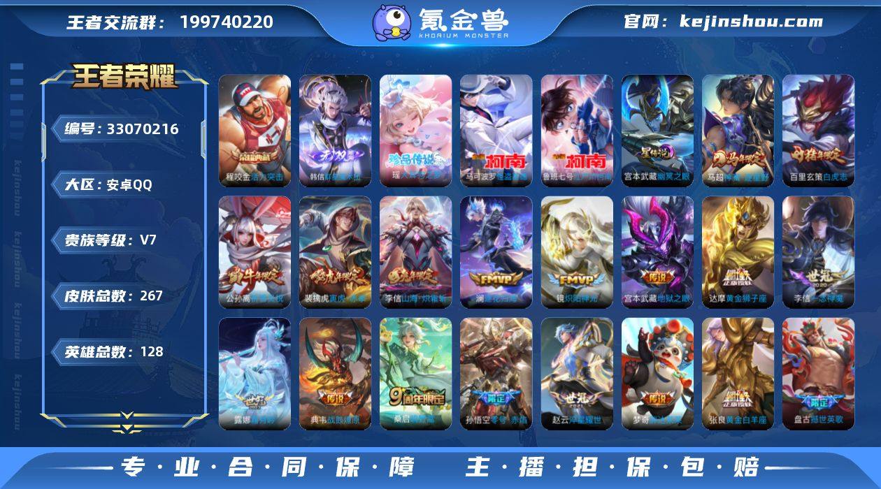 【店长主推精品号·群星魔术团·活力突击·大耳狗之梦·江户川柯南·怪盗基德·神骥逐星野·逐花归海·霜月吟·山海炽霜斩·寅虎赤拳·淬星耀世·祈雪灵祝·零号赤焰·白虎志·花木兰默契交锋·可二次】YXw22904-安卓Q-128英雄-267皮肤-17王者印记-170铭文-贵族积分3w【贵族7】【1典藏·1无双·3珍品·1星传说·17传说·1天幕·12按键】【因赛季更新游戏段付以上号为准!】 【英雄全皮】:孙权全皮,敖隐全皮,蒙恬全皮,空空儿全皮,影全皮 【荣耀典藏】:程咬金活力突击 【无双皮肤】:韩信群星魔术团 【珍品传说】:瑶大耳狗之梦,鲁班七号江户川柯南,马可波罗怪盗基德 【星元皮肤】:宫本武藏幽冥之眼 【天幕】:力鸭全场天幕 【传说皮肤】:马超神骥逐星野,桑启鸣野蒿,典韦战鼓燎原,澜逐花归海,露娜霜月吟,李信山海炽霜斩,裴擒虎寅虎赤拳,赵云淬星耀世,公孙离祈雪灵祝,镜炽阳神光,孙悟空零号赤焰,李信一念神魔,张良黄金白羊座,达摩黄金狮子座,百里玄策白虎志,梦奇胖达荣荣,宫本武藏地狱之眼 【限定皮肤】:白起狰,姜子牙天穹之誓,李白谪仙醉月,狄仁杰阴阳师,赵云皇家上将,孙尚香蔷薇恋人,庄周高山流水,高渐离玩趣恶龙,吕布御风骁将,元歌无心,夏侯惇朔风刀,马可波罗...