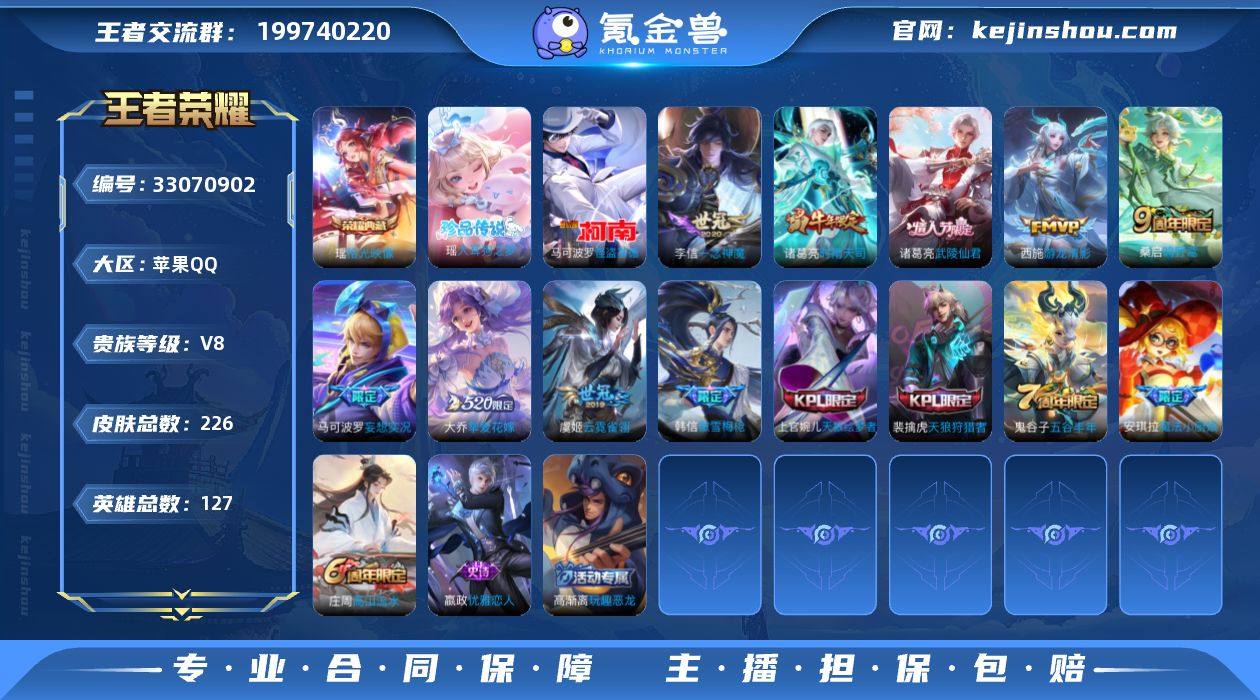 苹果Q 可二次 1典藏2珍品11传说 127英雄226皮肤 拾光映像 大耳狗之梦 怪盗基德 心动手记朵莉亚 鸣野蒿 启明星使 时雨天司 武陵仙君 游龙清影 时之祈愿女 挚爱花嫁 妄想实况 一念神魔 云霓雀翎 时雨天司 山海碧波行 天狼狩猎者 天狼绘梦者 傲雪梅枪 魔法小厨娘 神迹守卫钟馗 冰冠公主 暗影游猎 黎明之约 云间偶戏 苍穹之光 电玩小子 燃音魔法 伽罗琥珀纪元 电玩爆裂旋风 天秀启明 遇见神鹿 唤灵魅影 无限星赏官 原初探秘者 水晶猎龙者 暗隐猎兽者 猫狗日记男 金属风暴 特工魅影 特工战影 白蛇 青蛇 黄金分割率 优雅恋人 玩趣恶龙 舞动绿茵 逐浪之夏 心灵战警 修罗 晚萤 千年之狐 紫霞仙子 功夫厨神 心灵骇客 圣诞恋歌 乘风破浪 圣诞狂欢 星夜王子 永昼 节奏热浪 天才门将 时之恋人女 偶像歌手 街头霸王 摇滚巨星 缤纷独角兽 鬼剑武藏 德古拉伯爵 冰雪圆舞曲 花好人间 疑决卦 醍醐杖 万华元夜 演武夺筹 驱傩正仪 未来纪元赵云 千军破阵 拳王 沙漠行僧 女仆咖啡 金庭之子 大漠名商 云中旅人 丁香结 海盐诗旅 皇家上将 擒涛扼浪 魅力维加斯 探海日志 水果甜心 古海寻踪 天穹祈灯 高山流水 奇幻香踪 吟游魔法 火炮绅士 五谷丰年 乱世虎臣 鹰眼统帅 魔术师 顽趣梦奇 王者荣耀账号