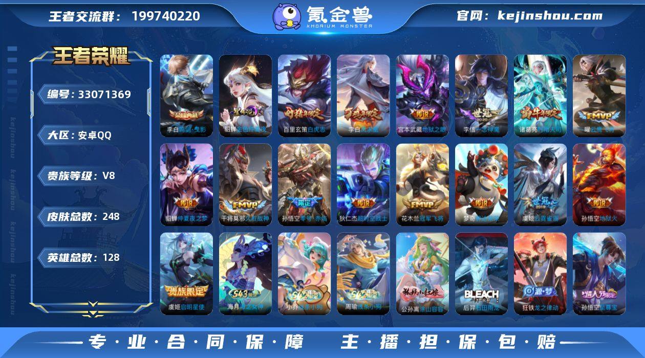 王者20478,扣扣钱包无法注销,安卓Q-V8-至尊星耀V段位-128英雄-248皮肤-1典藏皮肤-15传说-57史诗 【英雄全皮】:敖隐全皮 【荣耀典藏】:李白鸣剑曳影 【传说皮肤】:诸葛亮时雨天司,虞姬启明星使,孙悟空零号赤焰,曜云鹰飞将,李信一念神魔,干将莫邪久胜战神,虞姬云霓雀翎,百里玄策白虎志,花木兰冠军飞将,梦奇胖达荣荣,貂蝉仲夏夜之梦,李白凤求凰,宫本武藏地狱之眼,孙悟空地狱火,狄仁杰超时空战士 【限定皮肤】:狄仁杰阴阳师,赵云皇家上将,嬴政白昼王子,鲁班七号狮舞东方,高渐离玩趣恶龙,阿轲迷踪丽影,芈月重明,吕布猎兽之王,周瑜赤莲之焰,元歌云间偶戏,元歌无心,夏侯惇朔风刀,曹操烛龙,曹操天狼征服者,典韦穷奇,马可波罗暗影游猎,狄仁杰魔术师,狄仁杰万华元夜,达摩沙漠行僧,项羽海滩派对,老夫子醍醐杖,程咬金演武夺筹,露娜一生所爱,刘邦夺宝奇兵,韩信飞衡,兰陵王驯魔猎人,兰陵王金庭之子,亚瑟潮玩骑士王,孙悟空至尊宝,孙悟空大圣娶亲,孙悟空零号赤焰,牛魔御旌,后羿辉光之辰,李元芳银河之约,李元芳云中旅人,虞姬启明星使,钟馗神迹守卫,钟馗驱傩正仪,杨玉环遇见飞天,蔡文姬繁星吟游,太乙真人饕餮,鬼谷子原初探秘者,...