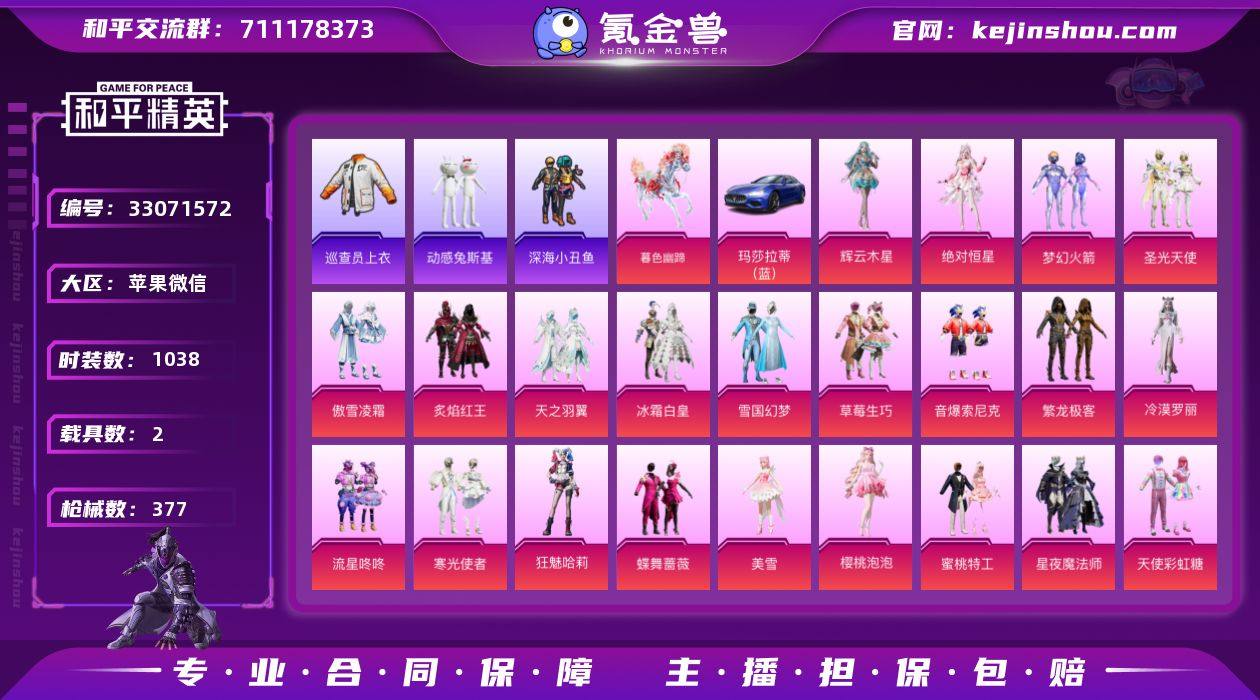 [377枪皮 286套装 超级王牌 多升级枪 26粉装]微信区 32王牌印记 带巡查衣26粉装 2载具 多升级枪梦幻火箭-小丑鱼-玛莎全有 账号亮点标签 雪国幻梦 梦幻火箭 超级王牌 M416-心之恋语 Mark.06 绝对防御上衣/巡查衣 狂魅哈莉 繁龙极客 樱桃泡泡 美雪 燃烧瓶-天降桃花 苹果微信 | 可二次实名 | 无防沉迷 | 套装数量286 | 枪皮数377 需要我再帮你做一个更低价引流版的标题,用来快速出