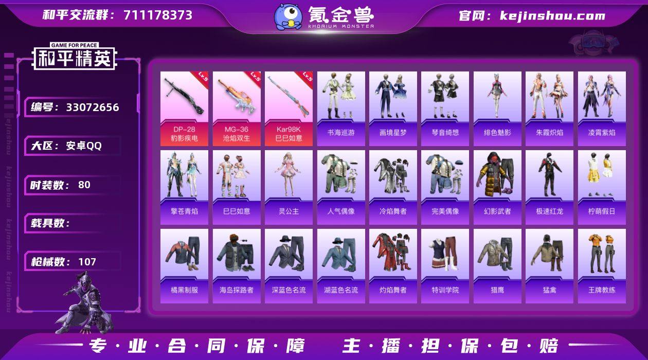 A1548安卓 手Q-1粉装-7特效枪-0载具-1粉色飞行器-27849热力值-5王牌印记-80套装-107枪皮 【粉色套装】:角色-罪夜之冕 【粉色枪皮等级】:ACE32-萌骑漫游(一级),UMP45-萌骑冒险(三级),AKS-74U-森灵之息(五级),Kar98K-巳巳如意(五级),Mk14-福马献瑞(五级),DP-28-豹影疾电(五级),MG-36-沧焰双生(五级) 【粉色枪皮】:ACE32-萌骑漫游,UMP45-萌骑冒险,AKS-74U-森灵之息,Kar98K-巳巳如意,Mk14-福马献瑞,DP-28-豹影疾电,MG-36-沧焰双生 【粉色飞行器】:炫彩糖果飞行器 【粉色降落伞】:星之彼岸降落伞,闲梦青缨降落伞,荧海星豚降落伞,异瞳寒姬降落伞,炫彩糖果降落伞,罪夜之冕降落伞 【稀有套装】:套装-巳巳如意,套装-雪国风尚,套装-炫彩糖果,套装-马上来财,角色-灵公主,套装-朱霞炽焰,套装-凌霄紫焰,套装-擎苍青焰,角色-绯色魅影,套装-书海巡游,套装-画境星梦,套装-琴音绮想,角色-霜刃之御,角色-月烬之祷,套装-雨过天青,套装-红釉青花 【稀有枪皮】:AUG-冰晶雪宝,AKM-星之彼岸,AKM-破晓战魂,AKM-龙的传人,M16A4-红色方程式,SCAR-L-夜灯,M416-红色方程式,M416-蓝色火焰,AUG-耀粉歌者,M762-天降萌叽,ACE32-画境星梦,ARX-凌霄紫焰,UZI-...