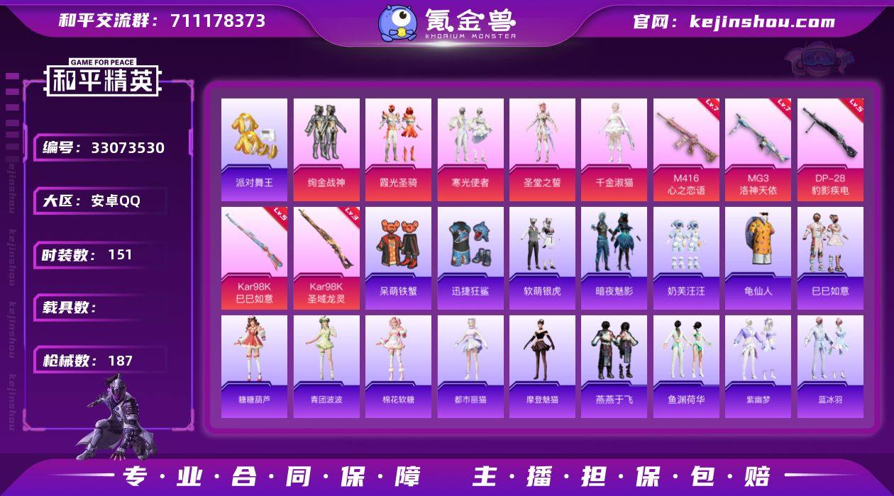 A1868安卓 手Q-5粉装-6特效枪-0载具-3粉色飞行器-61317热力值-5王牌印记-151套装-187枪皮 【热门品类】:套装-派对舞王,套装-SS1特训,套装-龟仙人 【粉色套装】:粉装-绚金战神,粉装-霞光圣骑,粉装-寒光使者,角色-圣堂之誓,角色-千金淑猫 【粉色枪皮等级】:M416-心之恋语(七级),Kar98K-巳巳如意(五级),Kar98K-圣域龙灵(三级),Mk14-福马献瑞(四级),DP-28-豹影疾电(五级),MG3-洛神天依(七级) 【粉色枪皮】:M416-心之恋语,Kar98K-巳巳如意,Kar98K-圣域龙灵,Mk14-福马献瑞,DP-28-豹影疾电,MG3-洛神天依 【粉色飞行器】:齐天大圣飞行器,凤舞九天飞行器,圣域金龙飞行器 【粉色降落伞】:甜蜜誓约降落伞,四圣焕新降落伞,香水柠檬降落伞,暗夜玫瑰降落伞,橘柚倾心降落伞,甜梦小狐降落伞,圣光天使降落伞,彩虹甜喵降落伞,莲影清波降落伞,圣堂之誓降落伞,拳皇·狂花道降落伞,荧海星豚降落伞,炫彩糖果降落伞 【稀有套装】:套装-龟仙人,套装-巳巳如意,套装-马上有钱,套装-糖糖葫芦,套装-青团波波,套装-棉花软糖,角色-都市丽猫,角色-摩登魅猫,套装-燕燕于飞,套装-鱼渊荷华,套装-紫幽梦,套装-蓝冰羽,角色-猎影月神,角色-瑰梦爱神 【稀有枪皮】...