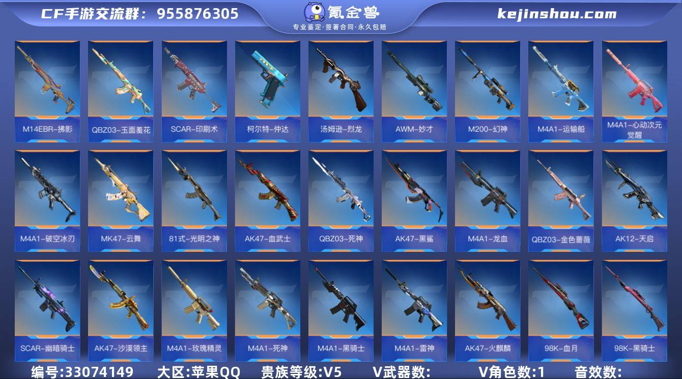 实名: 可修改 贵族等级: V5 v武器: MK47-云舞,81式-光明之神,AK47-血武士,M4A1-龙血,擎天,AK12-天启,M4A1-游骑兵,AK47-沙漠领主,M4A1-玫瑰精灵,M4A1-死神,M4A1-黑骑士,M4A1-雷神,AK47-火麒麟,98K-血月,M200-幻神,98K-黑骑士,AWM-妙才,AWM-裁决,09式狙-天神,巴雷特-极光,巴雷特-毁灭,AWM-天龙,刘易斯-血月,CZS2-心动次元觉醒,MK5-极光,双持斯泰尔-天使,汤姆逊-烈龙,KSG-黑骑士,地狱烈炎,地狱火,沙鹰-修罗,血阳,血月,星芒,神罚战斧,马来剑-毁灭,屠龙,M4A1-运输船,M4A1-心动次元觉醒,M4A1-破空冰刃,QBZ03-死神,AK47-黑鲨,QBZ03-金色蔷薇,SCAR-幽暗骑士,刘易斯-天使,加特林-堡垒,柯尔特-仲达,USP-机械迷城,唐刀-大唐荣耀,手斧-机械迷城,M4A1-堕天神,QCW05-变形金刚·大黄蜂,改装GLOCK-木兰,98K-星神,打击者-天神,SCAR-探星者,M4A1-猎神,SCAR-印刷术,QBZ03-玉面羞花,M14EBR-拂影,M4A1-太白诗仙,USP-太白诗仙,双管猎枪-未来战士,CBJ-MS-毒蜂,M16-恶魔,QBB95-再战涿鹿,M4A1-铁胆虎魄,AK47-塔罗牌觉醒,VSK-94-九黎兵主觉醒,CZ75-策,蝴蝶刀-天神,AN94-赳赳秦师,M4A1-夏清,AK47-木兰,百战巾帼枪,M4A1-神工天巧,9A91-天神,USP-神工天巧,沙鹰-修罗-现代金属,AK47-谜城烟火,HK417-朱雀,鹰爪-...