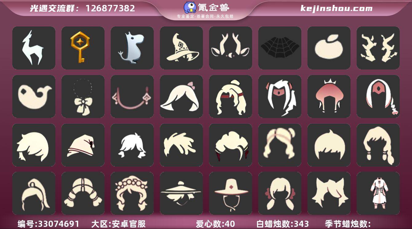 编号AY463 安卓手机 换绑CD5.3 详情请看衣柜截图 蜡烛数:343 爱心数:40 季节已毕业:九色鹿季 筑巢季 姆明季 珍稀物品:无 完成地图:雨林 霞谷 暮土 礼包:蝴蝶结 巫师 橘子 鲤鱼 九色鹿角 新年耳钉 枯角 蜘蛛斗 裤子:背带裤 双子裤 遥鲲裙 乞丐裤 飞天裤 采药人裤 古风裤 姆明季·裤子 妮妮裙子 五周年裤子 遥鲲沙滩短裤 搓澡巾 灯笼裤 紧身裤 连体裤 武士裤 渔夫裤子套装 猫猫裤 猎手长袍 鞋子:毛靴 布鞋 鱼嘴凉靴 姆明季·鞋子 芭蕾鞋 面具:矮人面具 黄鼠狼 老头面具 海盗面具 黑脸白眉面具 白环面具 蓝色条纹面具 白色条纹面具 贴花面具 九色鹿面具 玫瑰面具 黑脸 面饰:蔚蓝眼镜 星星眼镜 肯德基联动眼镜 发型:魔法帽 公主 粗辫 书虫 总裁发型 正太 高马尾 脏辫发型 明制 若笠 花环 斜刘海发型 冥龙长辫 遥鲲长辫 皇冠水母头 史力奇发型 古典长分 猎手长发 樱花 马蹄莲发型 猫耳 头饰:小鸟头饰 羽毛装饰 黄色蝴蝶结 花环 爱心帽 珊瑚 太阳帽 小黄帽 蓝色音乐会 红耳机 斗篷:红金 黑金 白金 白鸟斗 蝴蝶斗篷 黄色蓑衣 三色斗篷 水母斗篷 遥鲲短斗篷 姆明季·斗篷 樱花斗 紫罗兰斗 郁金香斗 马蹄莲斗 绿芽 海洋斗 鱼纹斗 彩虹斗 圣诞斗 配饰:手持小铃铛...
