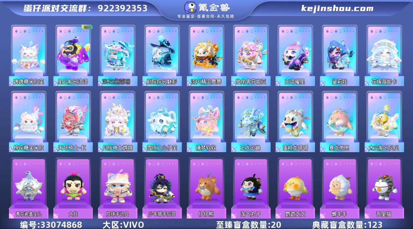 【dan839】安卓网易 VIVO渠道服 至臻皮肤数量:20 典藏皮肤数量:123 换绑冷却:无冷却 热门装扮:花嫁薇妮卡 圣翼天使-澄 王冠精灵莉奥拉 月族神女嫦娥 浪花黛露珊 鲨莉娃 独角兽芬妮亚 雪原之心伊芙 剧院院长魅影 跳跳糖米拉芙 棉花糖芙米拉 天穹骑士-虹 流火精灵舞舞 捕梦软软 星云船长洛洛 太空船长贝贝 暴龙崽崽 玉龙云岫 主唱曜星 蛋糕龙嗝嗝 海盐布丁嘟嘟 青花瓷盖宝儿 柠檬汽水啵啵 誓约玩偶里昂 沉眠的螺壶 月兔 少年猎手后羿 大亨波利 幽猎塞莉诺 凯洛斯先生 誓约花童莫莉 控球手迅风 大娃 波泡儿 幽灵猫妮莎 发美美 石心船长苏勒 面包狗松松 豫剧少女嫣然 酷洛米 大耳狗 小演员露希 美羊羊 小灰灰 神月将军夜魄 白羽仙女索菲 星云咩咩 海藻偷偷 熊猫岁岁 彩虹水波蛋 水波蛋 机械师维迪 酒吞童子 茨木童子 甲龙晶晶 失心熊 懒羊羊 水母尤莱亚 仓鼠米仔 涂山浅浅 鹦鹉芝芝 吾皇猫 大灰狼 巴扎黑 淘气丸子 狗蛋阿甜 小红帽 饶舌诗人 仔仔熊 DongDong 载具装扮:星河弹弹车 扶光妙妙鲤 翅膀:浅海蓝灵 天照耀盾 蝴蝶之梦 绘山河折扇 圣洁处女座