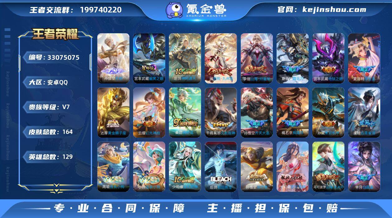 【WZ182152】安卓Q-V7-尊贵铂金II段位-129英雄-164皮肤-1无双-1珍品传说-14传说-58史诗【英雄全皮】:橘右京全皮,敖隐全皮【无双皮肤】:孙悟空无相【珍品传说】:伽罗沧流箭【传说皮肤】:后羿神树通天,澜愿照九州拓,云缨幻光神枪,桑启鸣野蒿,夏侯惇霜北刀,夏洛特浮生妄,孙悟空齐天大圣,李信山海炽霜斩,橘右京枫霜尽,孙策末日机甲,干将莫邪久胜战神,虞姬云霓雀翎,达摩黄金狮子座,宫本武藏地狱之眼【限定皮肤】:夏侯惇霜北刀,蒙犽顽岩魄,蔡文姬夏日便利店,虞姬夏日便利店,姜子牙天穹之誓,李白谪仙醉月,狄仁杰阴阳师,赵云皇家上将,芈月白晶晶,元歌无心,马可波罗山海玄木吟,狄仁杰魔术师,项羽海滩派对,橘右京枫霜尽,孙悟空孙行者,孙悟空齐天大圣,李元芳云中旅人,鬼谷子五谷丰年,沈梦溪大漠名商,裴擒虎李小龙,裴擒虎擒涛扼浪,云中君纤云弄巧,李信山海炽霜斩,嫦娥暖冬兔眠,鲁班大师探海日志,桑启海盐诗旅,夏洛特浮生妄,暃星界游侠,阿古朵江河有灵,张良古海寻踪,蒙犽百解令,高渐离燃音魔法,妲己灵卜魔法,鬼谷子天穹祈灯,姬小满妄想食味,沈梦溪龙舞盛年,刘邦剑破天穹,程咬金群星魔术团,镜青焰无极,项羽苍威无极,周瑜熔金海...