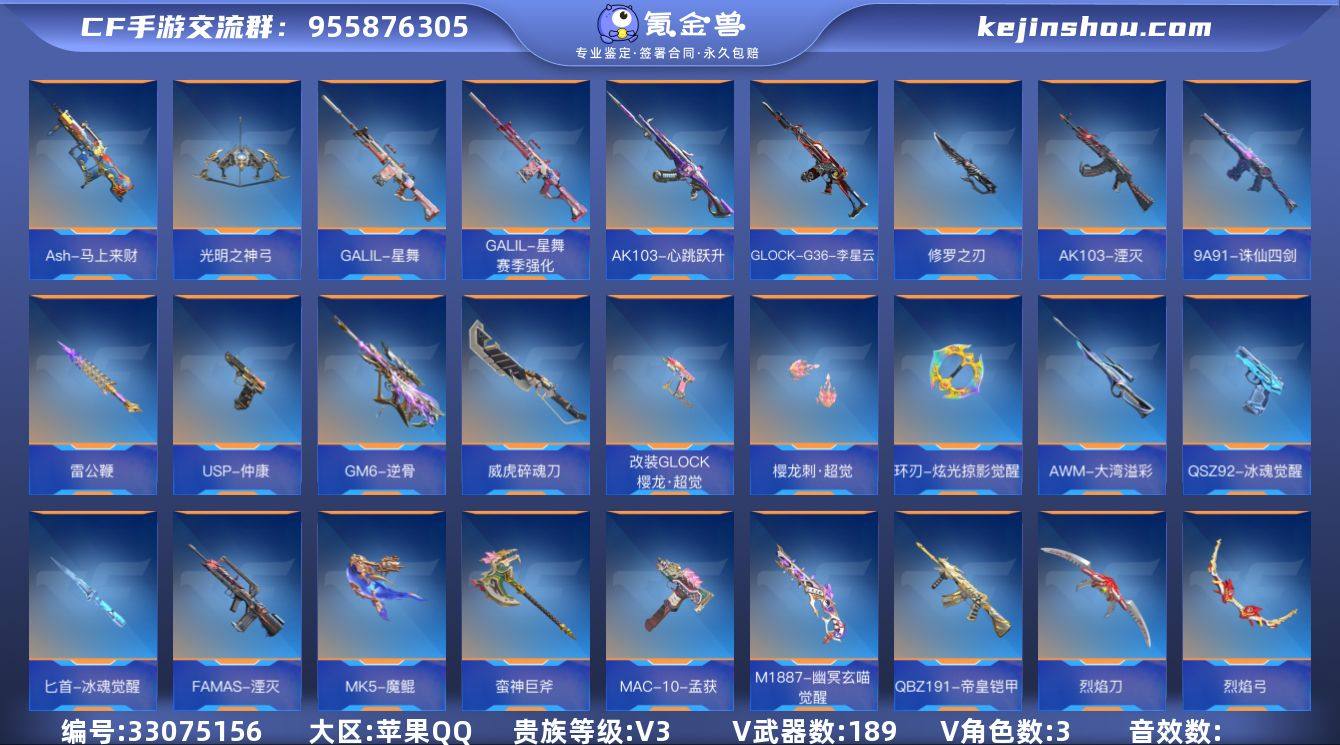 实名: 可修改 贵族等级: V3 v武器: 81式-光明之神,M4A1-海骑士,AK47-血武士,M4A1-赛博雷神,AK47-燎天净火,AK47-猩红传说,M14EBR-天神,QBZ19-天使,M4A1-龙血,擎天,AK12-天启,AK47-沙漠领主,M4A1-玫瑰精灵,M4A1-死神,M4A1-黑骑士,M4A1-雷神,98K-血月,M200-幻神,98K-黑骑士,AWM-裁决,09式狙-天神,巴雷特-极光,巴雷特-毁灭,AWM-天龙,双持斯泰尔-天使,寒霜烈龙,汤姆逊-烈龙,地狱烈炎,地狱火,沙鹰-无影,USP-神罚,沙鹰-修罗,尼泊尔-铜头铁臂,蝴蝶刀-极光,血月,战斧-无影,星芒,擎天觉醒,神罚战斧,马来剑-毁灭,屠龙,龙啸,M4A1-运输船,AK47-华夏传说,M4A1-心动次元觉醒,QBZ03-死神,AK47-黑鲨,QBZ03-金色蔷薇,巴雷特-冬灭觉醒,AWM-天使,刘易斯-天使,加特林-堡垒,柯尔特-仲达,USP-机械迷城,唐刀-大唐荣耀,手斧-机械迷城,龙啸-堕天神,M4A1-堕天神,柯尔特-伏刹山海觉醒,CZS2-血月,M1216-血月,改装GLOCK-木兰,QBB95-极光,98K-星神,M4A1-猎神,沙鹰-神兵修罗,气手枪-血月,M14EBR-拂影,迷你玉凝,AK47-雷霆,M4A1-太白诗仙,USP-太白诗仙,太白诗仙扇,HK416-极光,CBJ-MS-毒蜂,毛瑟-毒蜂,AK47-雅韵青花,M16-恶魔,QBB95-再战涿鹿,M4A1-铁胆虎魄,AK47-塔罗牌觉醒,VSK-94-九黎兵主觉醒,蝴蝶刀-天神,AN94-...