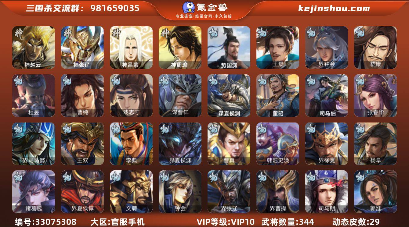 【14790000】官阶:大将军;VIP等级:VIP10;史诗武将数量:29;动态皮肤数量:29;武将总数:344;史诗宝珠数量:0;将魂数量:3659;神将:2;魏国史诗武将:17;蜀国史诗武将:6;吴国史诗武将:4;群史诗武将:9
