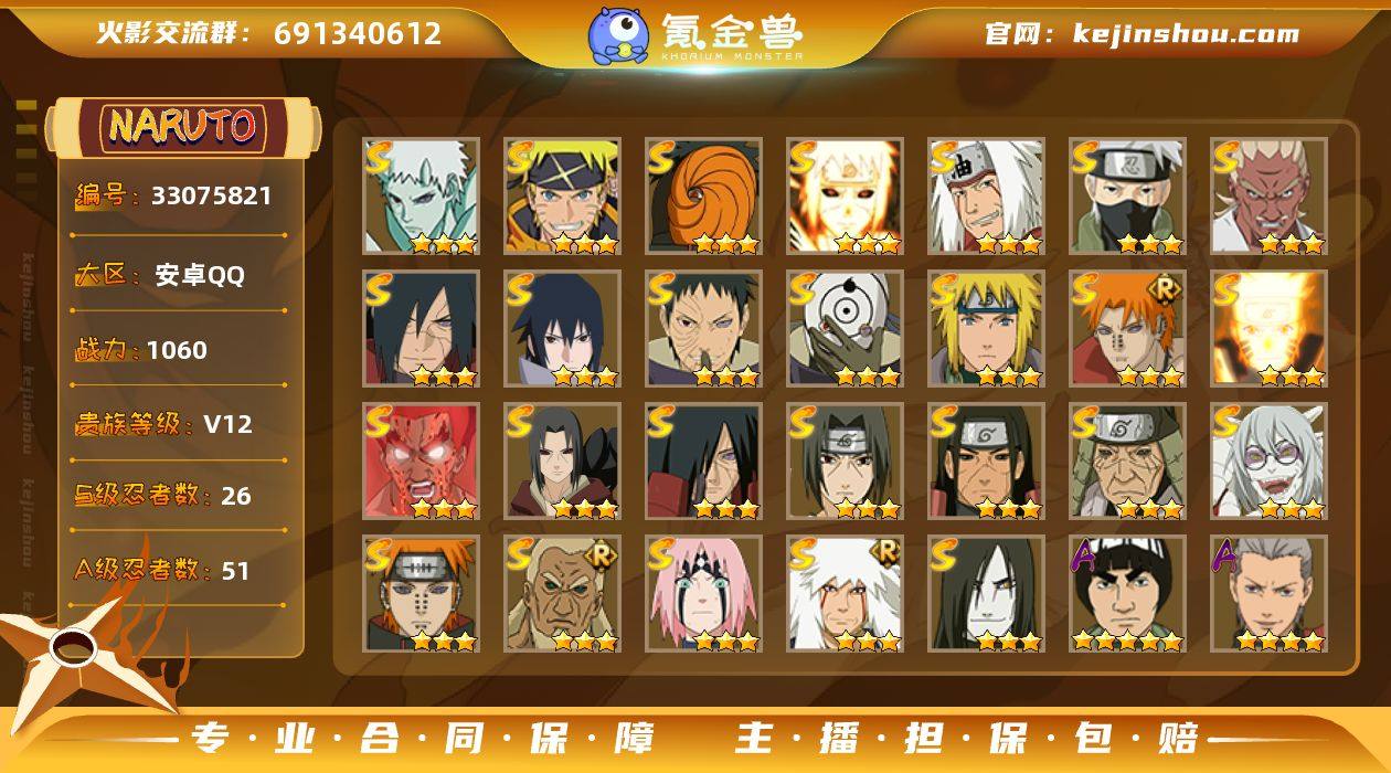 【性价比多忍者 多碎片 带超哥】y7402 战力1060w 26s 51a 熊猫 2个298a 9个198a 7200金币 25忍法帖可开 狂野鲛鲨 神驹小南+新春鼬+面麻时装 雨隐村主场景 58片纲手 80片三代火影 60片红面具 80片忍战大野木