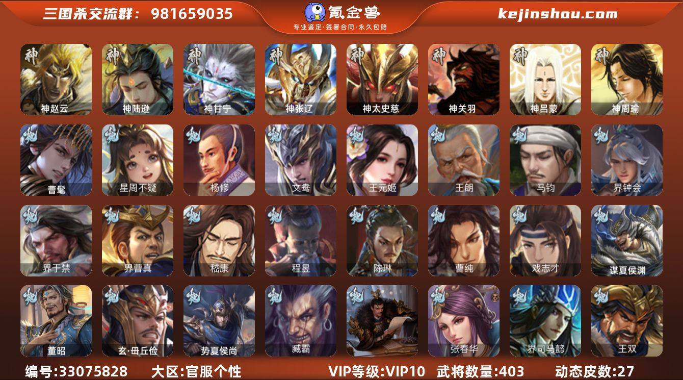 神赵云,神陆逊,神甘宁,神张辽,神太史慈,曹髦,星周不疑,杨修,王元姬,王朗,马钧,界钟会,界于禁,界曹真,嵇康,陈琳,曹纯,戏志才,程昱,马云騄,谋赵云,谋马超,诸葛瞻,张星彩,王平,沙摩柯,谯周,花鬘,董允,孙皓,骆统,留赞,界朱然,界徐盛,界步练师,贺齐,势陆郁生,文鸯,谋貂蝉,裴秀,界沮授,左慈,郑玄,张让,星黄忠,陶谦,麹义,南华老仙,祢衡,沮授,界李儒,公孙康,卑弥呼,许攸,友诸葛亮,兀突骨,神吕蒙,神周瑜,神关羽,势夏侯尚,SP关羽,SP蔡文姬,乐进,曹昂,诸葛诞,朱灵,文聘,SP姜维,张春华,钟会,曹冲,郭淮,满宠,界王异,界曹操,界司马懿,界夏侯惇,界张辽,界许褚,界郭嘉,李典,曹真,韩浩史涣,陈群,曹叡,曹休,钟繇,司马朗,王基,李通,郭皇后,孙资刘放,辛宪英,界甄姬,鲁芝,蒯越蒯良,界典韦,界荀彧,界徐晃,界曹丕,毌丘俭,界邓艾,张恭,贾逵,界曹植,界曹彰,界满宠,界郭淮,卞夫人,界陈群,蔡贞姬,袁涣,王双,崔琰,毛玠,杨阜,阮慧,曹嵩,谋徐晃,谋于禁,牵招,胡班,玄毌丘俭,谋夏侯渊,界夏侯渊,臧霸,董昭,SP...