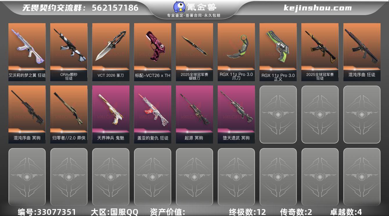 【948173】12橙皮 2金皮 4紫皮 52皮肤 24英雄 97卡面 775已用源晶 白银段位 【套装】2025全球冠军赛 【近战武器皮肤】碎心裂刃,蒙太奇 战斧,VCT 2026 篆刀,2025全球冠军赛 蝴蝶刀,紫金爪刀,爪刀-RGX 11z Pro 3.0 【佩枪皮肤】标配-VCT26 x TH,超集系统 标配,风暴之子 正义,蒙太奇 狂怒,正义-RGX 11z Pro 3.0,鬼魅-天界神兵 【冲锋枪皮肤】蒙太奇 骇灵 【霰弹枪皮肤】风暴之子 雄鹿 【步枪皮肤】风暴之子 戍卫,蒙太奇 幻影,超集系统 狂徒,狂徒-ORAx颗秒,2025全球冠军赛 狂徒,狂徒-混沌序曲,狂徒-艾沃莉的梦之翼,狂徒-盖亚的复仇 【狙击枪皮肤】莽侠-归零者//2.0,风暴之子 冥驹,超集系统 飞将,冥驹-起源,冥驹-堕天遗武,冥驹-混沌序曲 【机枪皮肤】蒙太奇 战神 【挂饰】2025全球冠军赛挂饰,风暴之子 挂饰,V26第一幕纪念币 挂饰,协议假人 挂饰,超集系统 挂饰,H2-Oh!挂饰,竞猜大师:胜利的滋味 挂饰,德制跑鞋挂饰,达摩娃娃挂饰,龙门挂饰,欢乐花瓣挂饰,聚宝蛋挂饰,精打细算挂饰,骑士之盾挂饰,瑞思拜挂饰,无畏契约GO!第一卷贤者挂饰,无人之境挂饰,无畏契约GO!第一卷奇乐挂饰,VCTxTH挂饰,飞刀挂饰,蓄势待滚挂饰,双城之战魄罗挂饰