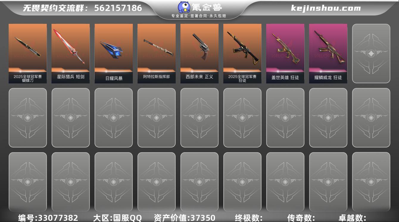 [皮肤价值37350 白银3 25冠军套]【游戏等级】Lv89 【段位】未定级 【R点】690 【皮肤总价值】37,350 【英雄数量】14 【皮肤数量】60 【挂饰数量】52 【卡面数量】78 【喷漆数量】73 【獠犬】獠犬-日冕雄师 獠犬-悠闲猫生 獠犬-幻语魔咒 【标配】标配-VCT25xPRX 标配-星际猎兵 标配-阿特拉斯指挥部 【近战武器】近战武器-星际猎兵短剑 近战武器-2025全球冠军赛蝴蝶刀 近战武器-阿特拉斯指挥部甩棍 近战武器-鬼丸国纲 近战武器-影钩 近战武器-日耀风暴遗器 近战武器-离子武器//2.0爪刀 近战武器-侦察力量蝴蝶刀 【狂徒】狂徒-2025全球冠军赛 狂徒-瑰梦艺语 狂徒-阿特拉斯指挥部 狂徒-盖亚的复仇 狂徒-掠影 狂徒-盖世英雄 狂徒-耀鳞威龙 【冥驹】冥驹-光环序列 冥驹-甜蜜战术 冥驹-混沌序曲 【幻影】幻影-星际猎兵 幻影-悠闲猫生 幻影-掠影//2.0 幻影-日耀风暴 幻影-侦察力量 【飞将】飞将-星际猎兵 飞将-悠闲猫生 飞将-幻语魔咒 【判官】判官-星际猎兵 判官-太空穿梭 判官-甜蜜战术 【戍卫】戍卫-光环序列 戍卫-太空穿梭 戍卫-甜蜜战术 【战神】战神-光环序列 战神-太空穿梭 【狂怒】狂怒-光环序列 狂怒-幻语魔咒 【鬼魅】鬼魅-瑰梦艺语 鬼魅-天界神兵 鬼魅-掠影//2.0 鬼魅-甜蜜...