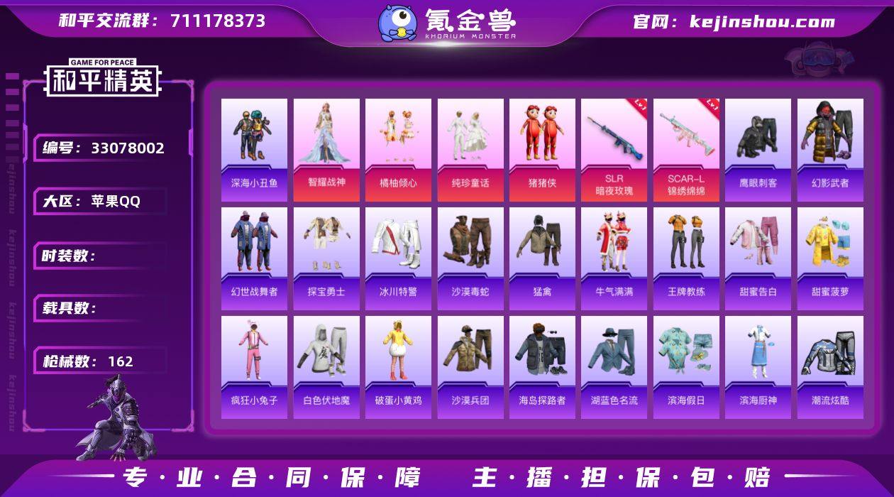 7】c28512-【无二次协助处理】【因赛季更新游戏段付以上号为准!】 苹果Q-4粉装3特效枪11热门105套装162枪皮 8印记 历史超级王牌5星 【4粉装】 猪猪侠 智耀战神 橘柚倾心 纯珍童话 【3特效枪】 SCAR-L-锦绣绵绵 (5级) SLR-暗夜玫瑰 (6级) Mk14-福马献瑞 (5级) 【11热门】 2B战斗服款 鹰眼刺客 深海小丑鱼 赛罗奥特曼 团圆交子 瑞龙福将 粉红小猪 破蛋小黄鸡 弄潮海豚 M762-瑞龙福将 M762-风花雪月 【1飞行器】 太空嘟嘟飞行器