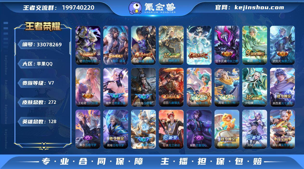 无二次-苹果Q-V7-最强王者段位-128英雄-272皮肤-1典藏皮肤-1典藏英雄-1珍品传说-8传说-78史诗HZ2633102 【英雄全皮】:孙权全皮,蒙恬全皮,空空儿全皮,影全皮 【荣耀典藏】:武则天英雄,铠银白咏叹调 【珍品传说】:张飞兔狲蓬尾 【传说皮肤】:马超神骥逐星野,后羿神树通天,妲己愿照众生和,桑启鸣野蒿,花木兰燃星之曲,王昭君乞巧织情,宫本武藏地狱之眼,武则天海洋之心 【限定皮肤】:蒙犽顽岩魄,蔡文姬夏日便利店,虞姬夏日便利店,姜子牙天穹之誓,杨戬破阵退雄兵,狄仁杰阴阳师,赵云皇家上将,孙尚香蔷薇恋人,庄周高山流水,元歌无心,狄仁杰魔术师,项羽海滩派对,花木兰燃星之曲,李元芳云中旅人,雅典娜黎明之约,百里玄策原初追逐者,裴擒虎擒涛扼浪,米莱狄胡桃异想国,云中君纤云弄巧,上官婉儿梁祝,嫦娥拒霜思,鲁班大师探海日志,桑启海盐诗旅,阿古朵江河有灵,张良古海寻踪,蒙犽百解令,蒙恬荣光圣徽,高渐离燃音魔法,妲己灵卜魔法,鬼谷子天穹祈灯,伽罗琥珀纪元,姬小满妄想食味,沈梦溪龙舞盛年,李元芳蔬乡物语,刘邦剑破天穹,程咬金群星魔术团,镜青焰无极,项羽苍威无极,刘备异域游侠,周瑜熔金海岸 【年限皮肤】:妲己愿照众生和 【赛...