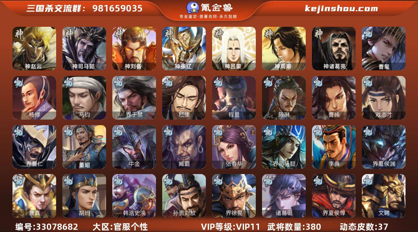 神赵云,神司马懿,神刘备,神张辽,神诸葛亮,曹髦,杨修,马钧,界于禁,嵇康,陈琳,曹纯,戏志才,程昱,关索,马云騄,诸葛瞻,赵襄,张星彩,王平,沙摩柯,界黄忠,董允,吴景,孙寒华,界徐盛,贺齐,界沮授,左慈,张让,陶谦,审配,麹义,祢衡,沮授,界左慈,杜预,谋张角,许攸,星董卓,兀突骨,士燮,司马昭,神吕蒙,神周瑜,SP关羽,SP曹仁,SP蔡文姬,乐进,曹昂,诸葛诞,朱灵,文聘,SP姜维,张春华,钟会,曹冲,郭淮,满宠,界王异,界曹操,界司马懿,界夏侯惇,界张辽,界许褚,界郭嘉,李典,曹真,韩浩史涣,陈群,曹叡,曹休,钟繇,司马朗,王基,李通,郭皇后,孙资刘放,辛宪英,界甄姬,吕虔,鲁芝,蒯越蒯良,界典韦,界荀彧,界徐晃,杜畿,界曹丕,毌丘俭,界邓艾,张恭,贾逵,界曹植,界曹彰,界满宠,界郭淮,卞夫人,袁涣,崔琰,阮慧,谋徐晃,谋于禁,界曹休,胡班,牛金,界夏侯渊,界曹仁,臧霸,唐咨,董昭,SP孙尚香,关银屏,夏侯霸,马良,关兴张苞,廖化,界马岱,关平,简雍,刘封,界法正,界关兴张苞,界刘备,界关羽,界张飞,界赵云,界马超,SP徐庶,吴懿,周仓,张...