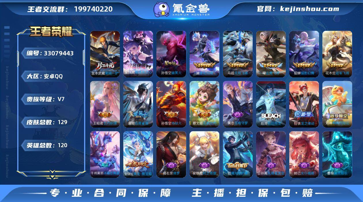 【高性价比·无相·沧流箭·黑崎一护·酷洛米之心·黑崎一护天幕·逐花归海·乞巧织情·无二次包过】w23131-安卓Q-120英雄-129皮肤-5王者印记-178铭文-贵族积分3w【贵族7】【1无双·3珍品·1星传说·11传说·1天幕·7按键·253幸运值】【因赛季更新游戏段付以上号为准!】 【英雄全皮】:空空儿全皮 【无双皮肤】:孙悟空无相 【珍品传说】:伽罗沧流箭,宫本武藏黑崎一护,安琪拉酷洛米之心 【星元皮肤】:孙悟空幽冥火 【天幕】:黑崎一护天幕 【传说皮肤】:后羿神树通天,桑启鸣野蒿,澜逐花归海,马超无双飞将,蔡文姬花朝如约,王昭君乞巧织情,曜云鹰飞将,貂蝉猫影幻舞,虞姬云霓雀翎,花木兰冠军飞将,孙悟空地狱火 【限定皮肤】:蒙犽顽岩魄,姜子牙天穹之誓,狄仁杰阴阳师,赵云皇家上将,元歌无心,狄仁杰魔术师,项羽海滩派对,李元芳云中旅人,干将莫邪冰霜恋舞曲,干将莫邪胡桃夹子,百里玄策原初追逐者,沈梦溪大漠名商,米莱狄胡桃异想国,安琪拉乘龙聚宝船,鲁班七号蔬乡物语,刘邦剑破天穹,周瑜熔金海岸 【年限皮肤】:安琪拉乘龙聚宝船 【赛季限定】:沈梦溪大漠名商,李元芳云中旅人,刘邦剑破天穹,姜子牙天穹之誓,东皇太一噬灭天穹,太乙真人谧流熔炉,钟馗虚灵犬护...
