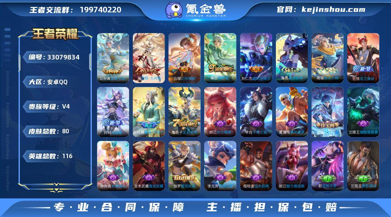 【WZYH1122】贵族4/皮肤80/传说5/史诗15/英雄116/云诺千山/愿照·九州拓/幻光神枪/鸣野蒿/超时空战士-狄仁杰/天穹之誓(s36)/海滩派对/云中旅人(s29)/五谷丰年/擒涛扼浪(s31)/探海日志(s32)/海盐诗旅(s30)/古海寻踪(s33)/鬼谷子天穹祈灯(S34)/虚灵犬护/线条小狗-周瑜/龙之律动/化蝶舞/器灵·浮梦炉/万物之道/箭羽风息/功夫厨神/逐浪之夏/暗隐猎兽者/乘风破浪/千年之狐/女仆咖啡/魅力维加斯/水果甜心/鬼剑武藏/影百相守梦/兰陵王雾影缉谜/踏浪烽翎/锦麟游梦/死霸装/小满鸭/命运加冕/布丁狗之约/灵野札记/春野闲踪/浪漫序章/玫蓝誓约/景韶洛都/雪境奇遇-西施/铁骨偃魂/苍林狼骑/雾都夜雨/敬我三分/妄想特派/蔚蓝守将/乓乓大师/次元突破/丁香结/命运角斗场/龙腾万里/阿尔法小队/兔女郎/死亡骑士/黄金武士/白色死神/忍·炎影/哥特玫瑰/街头霸王/碧珀绯影/赤焰之缨/启蛰/孤猎/归虚梦演-西施/幸存者/归虚梦演-曜/森/灼热之刃/棒球奇才/魇语军师/霓裳曲/激情绿茵/特种部队/绯红之刃/木偶奇遇记