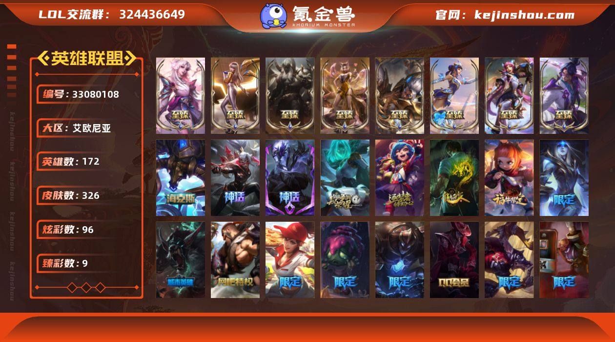【LOLYH2123】172英雄/326皮肤/13神话/47限定/9臻彩/96炫彩/43传说/68史诗/黄金账号等级:598/10周年 安妮/源代码 乐芙兰/殿堂传奇 薇恩/灰烬杀手 塞拉斯/至臻 灵魂莲华 易/至臻 青花瓷 拉克丝/至臻 灵魂莲华 拉克丝/至臻 K/DA 阿狸/至臻 K/DA 卡莎/至臻 幻灵战斗猫 金克丝/至臻 腥红之月 亚托克斯/至臻 神龙尊者 炎龙瑟提/海克斯 阿利斯塔/天龙之子 卡莎 飞龙乘云/无畏骑士 瑟庄妮 赤子初心/冠军掠夺者 卡兹克 凯旋圣装/灵魂莲华 卡西奥佩娅 流火/星之守护者 阿卡丽 未来之光/魔女 阿卡丽 虚荣/净雪之月 莫甘娜 冬虹/红莲之刃 锐雯/龙的传人 李青/福牛守护者 安妮/点心宝贝 阿木木/圣诞开心鬼 提莫/圣诞精灵 崔丝塔娜/圣诞狂欢 努努/英勇玩具兵船长/圣诞老人 酒桶/圣诞驯鹿 克格莫/魄罗骑士 瑟庄妮/银白审判 凯尔/送披萨的小姐姐 希维尔/冠军之刃 锐雯 2016/S2 暗杀星 发条/S4 SSW 图奇/S4 SSW 泰隆/S4 SSW 锤石/S12 DRX 亚托克斯/S12 DRX 千珏/S12 DRX 阿卡丽/S12 DRX 艾希/S12 DRX 凯特琳/S12 DRX 茂凯/暗裔英雄 盖伦/胜利之剑 亚托克斯/胜利女神 瑟庄妮/胜利凤凰 艾尼维亚/胜利女神-菲奥娜/鬼影重重 魔腾/鬼影森森 茂凯/泳池派对 格雷福斯/泳池派对 嘉文四世/泳池派对 雷克...