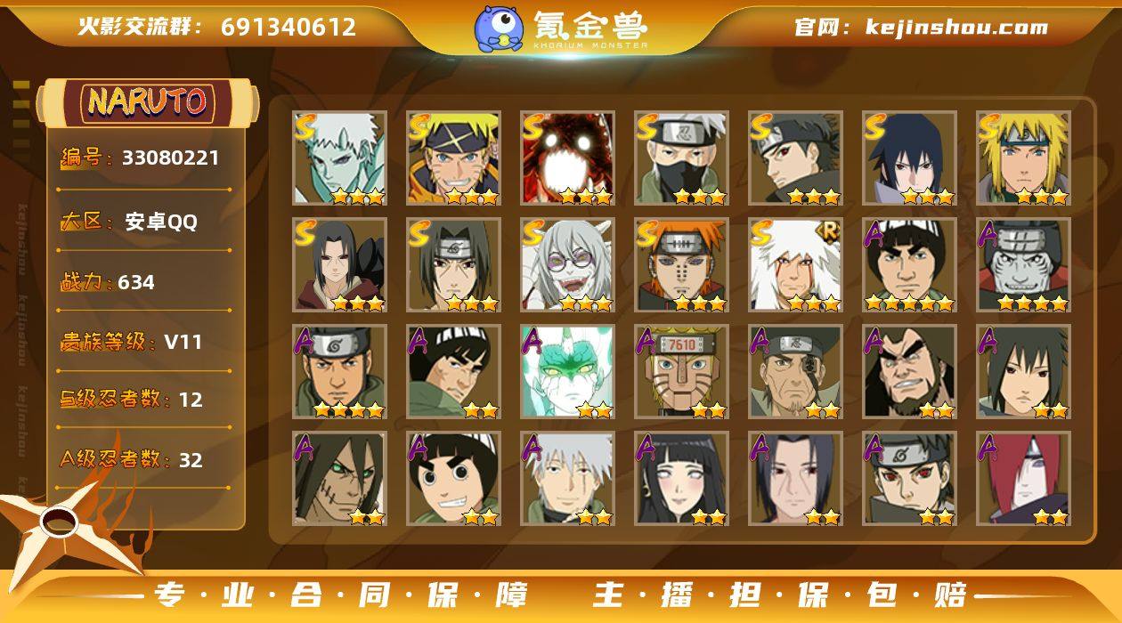 【HYYH1407】V11/战力634W/S忍12/A忍32/四星A-干柿鬼鲛/二星A-我爱罗「疾风传」/三星S-宇智波带土「十尾人柱力」/二星A-飞段「死司凭血」/二星A-蝎「晓创生」/二星A-宇智波鼬/二星A-宇智波止水/三星S-宇智波佐助「永恒万花筒」/三星S-宇智波鼬「秽土转生」/三星S-旗木卡卡西「须佐能乎」/二星A-长门「青年」/二星A-宇智波佐助「疾风传咒印」/二星A-蝎/三星S-佩恩「天道」/二星A-桃地再不斩「漂泊武士」/三星S-漩涡鸣人·宇智波佐助/三星S-波风水门/二星A-秋道丁次「忍界大战」/二星A-角都「秽土转生」/五星A-迈特凯/二星A-李洛克「忍界大战」/二星A-土台「忍界大战」/二星A-神秘面具男 「忍者之路」/2星旗木卡卡西「神威对决」/三星S-药师兜「仙人模式」/二星A-波风水门 「青年」/四星A-猿飞阿斯玛/三星S-自来也「舞之豪杰」/三星S-漩涡鸣人 「暴怒·第六尾」/2星迪达拉「晓创生」/二星A-佩恩·六道「漂泊浪客」/二星A-小南「新春限定」/三星S-宇智波止水「须佐能乎」/二星A-日向雏田 「最终章」/二星A-飞段/二星A-神农 「羁绊」/二星A-宇智波鼬 「夏日限定」/二星A-宇智波佐助「万花筒写轮眼」/二星A-宇智波泉奈/二星A-旗木卡卡西 「幻之真容」/二星A-巳月「仙人模式」/二星A-迈...