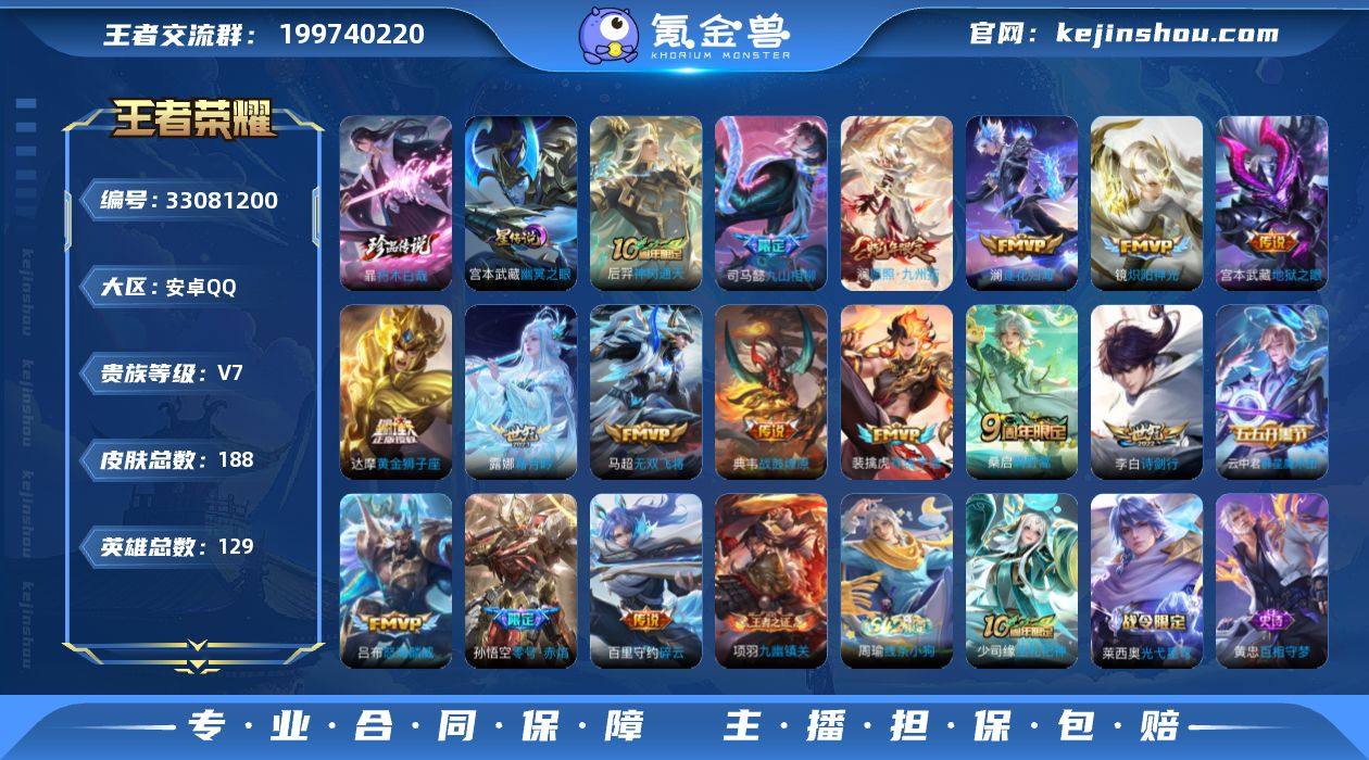 AHC60118,,,1星元,,,安卓Q-V7-永恒钻石IV段位-129英雄-188皮肤-1珍品传说-17传说-47史诗 【英雄全皮】:孙权全皮,敖隐全皮,空空儿全皮 【珍品传说】:暃朽木白哉 【传说皮肤】:后羿神树通天,司马懿九山相柳,澜愿照九州拓,裴擒虎祥瑞亨通,桑启鸣野蒿,云中君群星魔术团,典韦战鼓燎原,澜逐花归海,露娜霜月吟,吕布怒海麟威,李白诗剑行,百里守约碎云,马超无双飞将,镜炽阳神光,孙悟空零号赤焰,达摩黄金狮子座,宫本武藏地狱之眼 【限定皮肤】:蒙犽顽岩魄,蔡文姬夏日便利店,虞姬夏日便利店,姜子牙天穹之誓,狄仁杰阴阳师,赵云皇家上将,鲁班七号狮舞东方,元歌云间偶戏,马可波罗山海玄木吟,狄仁杰魔术师,项羽海滩派对,兰陵王驯魔猎人,孙悟空零号赤焰,李元芳云中旅人,百里玄策原初追逐者,裴擒虎擒涛扼浪,蒙犽狂想玩偶喵,艾琳女武神,阿古朵江河有灵,鬼谷子天穹祈灯,刘邦剑破天穹,程咬金群星魔术团,云中君群星魔术团,镜青焰无极,项羽苍威无极,周瑜熔金海岸 【年限皮肤】:马可波罗山海玄木吟,澜愿照九州拓 【赛季限定】:李元芳云中旅人,裴擒虎擒涛扼浪,鬼谷子天穹祈灯,刘邦剑破天穹,姜子牙天穹之誓,东皇太一噬灭天穹,太乙真人谧...