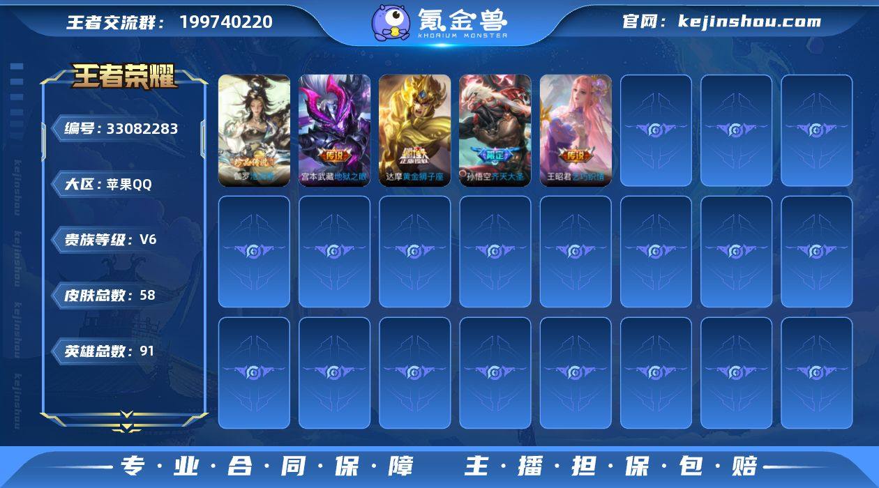 苹果Q 不可二次 2珍品7传说58皮肤91英雄 沧流箭 器灵落星盏 异界灵契花木兰 神骥镇沧海 神骥越千峰 齐天大圣 乞巧织情 黄金狮子座 地狱之眼 撼世英歌 黄忠百相守梦 无限星赏官 逐浪之夏 修罗 幽灵船长 乘风破浪 末日机甲男 鬼剑武藏 花好人间 皇家上将 魅力维加斯 鹰眼统帅 魔术师 王者荣耀账号
