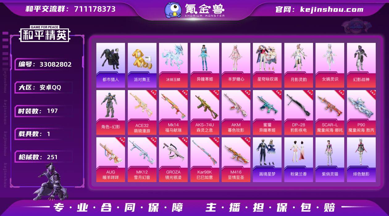 M1047459【身法号1载具-7粉装-13特效枪 M416-至情至圣[7级]忍者信条,小丑鱼,都市猎人,浪漫天命,派对舞王,暗影哥特】安卓手Q-1载具-7粉装-13特效枪-197套装-251枪皮-11王牌印记-卓越王牌4星-81556热力值【1载具】冰绡玉鳞【7粉装】角色-异瞳寒姬,星穹咏叹调,角色-月影灵韵,幻影战神,角色-女娲灵识,角色-羊梦糖心,角色-冷漠罗丽【13特效枪】P90-魔童闹海 敖丙[3级],DP-28-豹影疾电[5级],Mk14-福马献瑞[5级],12-雪月幻音[6级],Kar98K-巳巳如意[5级],AKS-74U-森灵之息[5级],ACE32-萌骑漫游[3级],M416-至情至圣[7级],SCAR-L-魔童闹海 哪吒[3级],AKM-暮色玫影[3级],AUG-暖羊咩咩[5级],蜜獾-异瞳寒姬[5级],GROZA-镜光银凌[5级]【7稀有】忍者信条,小丑鱼,都市猎人,浪漫天命,派对舞王,暗影哥特,AKM-缤纷海域【21飞行器】镜光幻境飞行翼,飞天猪飞行器,终晖之翼飞行器,破刃行动尾迹,顶峰精英尾迹,云朵驼驼飞行器,炫彩糖果飞行器,登顶巅峰飞行器,狂鲨锋刃飞行器,幻骨萌王飞行器,招财竹蜻蜓飞行器,异域银装飞行器,拳皇97滑翔尾迹,时空协奏飞行器,繁龙极客飞行器,提桶跑路飞行器,鸡智如我飞行器,粉色滑翔尾迹,马上有福飞行器,灵珠游龙飞行器,幻海精灵飞行器【1头盔】幻影战神头盔【2背包】金...