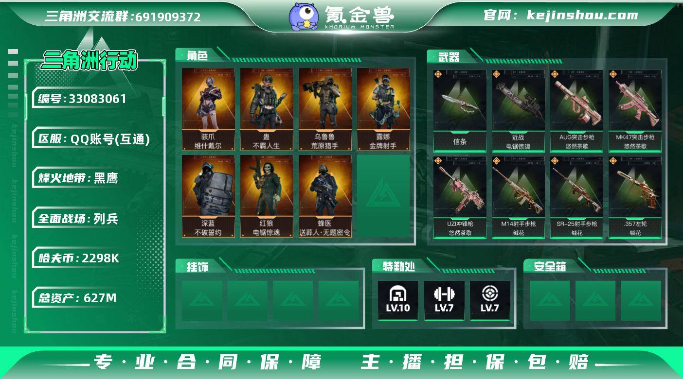 【SJZG4661】总资产(M):627M/哈夫币(K):2298K/哈夫币(K):2298K/传说枪皮数:30/全面战场等级:13_段位:列兵/烽火地带等级:60_段位:黑鹰/骇爪-维什戴尔/蜂医-送葬人·无题密令(S5)/深蓝-不破誓约(S6)/红狼-电锯惊魂/露娜-金牌射手(S7)/乌鲁鲁-荒原猎手/蛊-不羁人生/近战-信条/近战-电锯惊魂/近战-黑鹰/M4A1突击步枪-阿米娅/ASh-12战斗步枪-鹅鸭杀/M16A4突击步枪-狩猎时刻/AUG突击步枪-悠然茶歇/SG552突击步枪-运动员/AK-12突击步枪-特斯拉线圈/SCAR-H战斗步枪-启航/G3战斗步枪-狩猎时刻/G3战斗步枪-骑士/CAR-15突击步枪-阿米娅/KC17突击步枪-电锯惊魂/MK47突击步枪-悠然茶歇/P90冲锋枪-信条/Vector冲锋枪-狩猎时刻/UZI冲锋枪-特斯拉线圈/UZI冲锋枪-悠然茶歇/SR-3M紧凑突击步枪-特斯拉线圈/勇士冲锋枪-能天使-午夜邮差/QCQ171冲锋枪-鹅鸭杀/S12K霰弹枪-电锯惊魂/725双管霰弹枪-送葬人-无题密令/M250通用机枪-骑士之心/QJB201轻机枪-鹅鸭杀/M14射手步枪-电锯惊魂/M14射手步枪-蛮荒/M14射手步枪-缄花/SR-25射手步枪-信条/SR-25射手步枪-缄花/R93狙击步枪-维什戴尔/.357左轮-缄花/QBZ95-1突击步枪-曙光/ASh-12战斗步枪-无极限/K416突击步枪-腊梅/K416突击步枪-阿萨拉特攻/M16A...