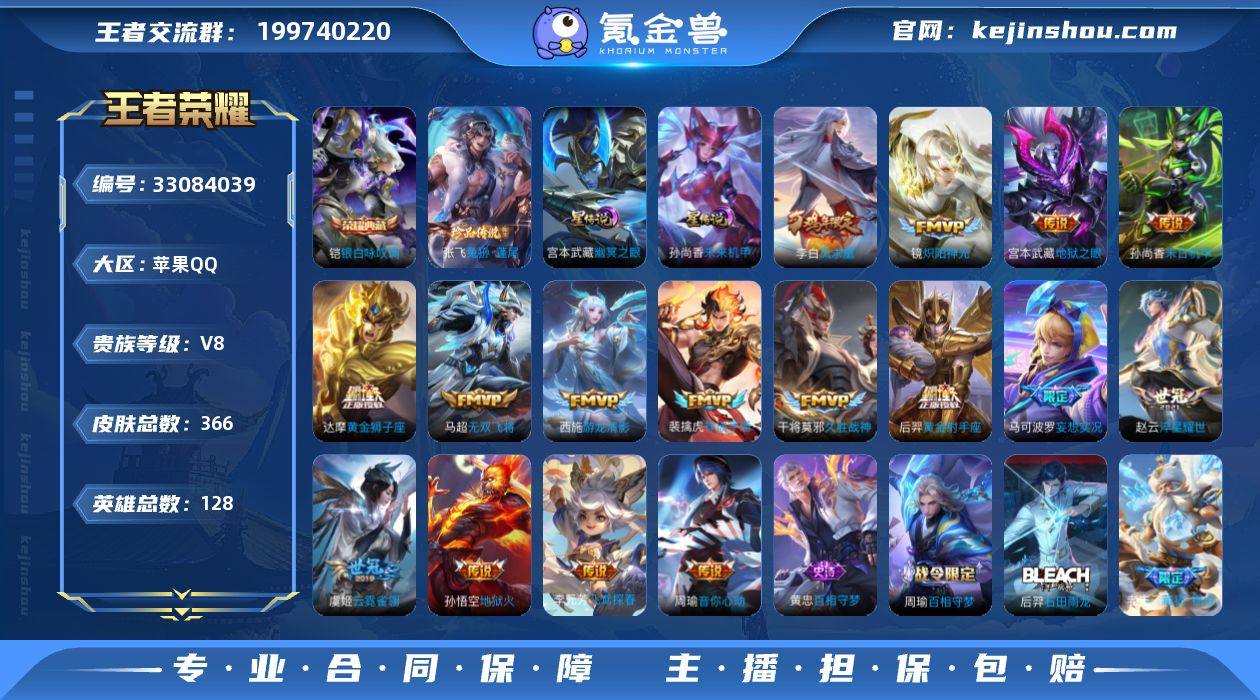 【店铺主推·金标狂铁·九霄神辉·银白咏叹调·兔狲蓬尾·神骥逐星野·祥瑞亨通·马可波罗妄想实况·怒海麟威·淬星耀世·炽阳神光·启明星使·云霓雀翎·凤求凰·埋骨钱·飞衡·可二次】w22752-苹果Q-128英雄-366皮肤-18王者印记-300铭文-贵族积分7w【贵族8】【2典藏·1珍品·2星传说·21传说·6按键】【因赛季更新游戏段付以上号为准!】 【英雄全皮】:狂铁全皮 【荣耀典藏】:花木兰九霄神辉,铠银白咏叹调 【珍品传说】:张飞兔狲蓬尾 【星元皮肤】:孙尚香未来机甲,宫本武藏幽冥之眼 【传说皮肤】:马超神骥逐星野,后羿神树通天,裴擒虎祥瑞亨通,桑启鸣野蒿,马可波罗妄想实况,吕布怒海麟威,马超无双飞将,赵云淬星耀世,西施游龙清影,周瑜音你心动,李元芳飞鸢探春,镜炽阳神光,虞姬启明星使,干将莫邪久胜战神,虞姬云霓雀翎,达摩黄金狮子座,后羿黄金射手座,李白凤求凰,孙尚香末日机甲,宫本武藏地狱之眼,孙悟空地狱火 【限定皮肤】:白起狰,暃埋骨钱,蔡文姬夏日便利店,大乔绒语心约,虞姬夏日便利店,狄仁杰阴阳师,虞姬凯尔特女王,赵云皇家上将,嬴政白昼王子,鲁班七号狮舞东方,高渐离死亡摇滚,高渐离玩趣恶龙,阿轲迷踪丽影,扁鹊炼金王,扁鹊奇幻香踪,芈月重明,芈...