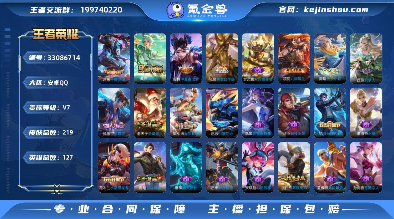 【秒换绑】安卓Q-V7-最强王者段位-127英雄-219皮肤-1典藏皮肤-3传说-43史诗 【英雄全皮】:影全皮 【荣耀典藏】:吕布千魇归渊 【传说皮肤】:桑启鸣野蒿,张良黄金白羊座,貂蝉仲夏夜之梦 【限定皮肤】:白起狰,姜子牙天穹之誓,狄仁杰阴阳师,虞姬凯尔特女王,赵云皇家上将,赵云引擎之心,孙尚香蔷薇恋人,庄周蜃楼王,高渐离死亡摇滚,钟无艳王者之锤,孙膑妖精王,扁鹊炼金王,芈月重明,夏侯惇朔风刀,甄姬游园惊梦,曹操烛龙,狄仁杰魔术师,狄仁杰万华元夜,达摩沙漠行僧,项羽海滩派对,老夫子圣诞老人,老夫子醍醐杖,兰陵王金庭之子,亚瑟狮心王,孙悟空至尊宝,钟馗驱傩正仪,雅典娜黎明之约,太乙真人饕餮,鬼谷子原初探秘者,弈星混沌棋,沈梦溪大漠名商,明世隐疑决卦,狂铁御狮,米莱狄御霄,盾山御銮,上官婉儿梁祝,鲁班大师探海日志,桑启海盐诗旅,阿古朵江河有灵,张良古海寻踪,鬼谷子天穹祈灯,姬小满妄想食味,沈梦溪龙舞盛年,刘邦剑破天穹,周瑜熔金海岸 【赛季限定】:亚瑟狮心王,庄周蜃楼王,孙膑妖精王,扁鹊炼金王,虞姬凯尔特女王,白起狰,太乙真人饕餮,曹操烛龙,芈月重明,狂铁御狮,米莱狄御霄,盾山御銮,夏侯惇朔风刀,弈星混沌棋,...