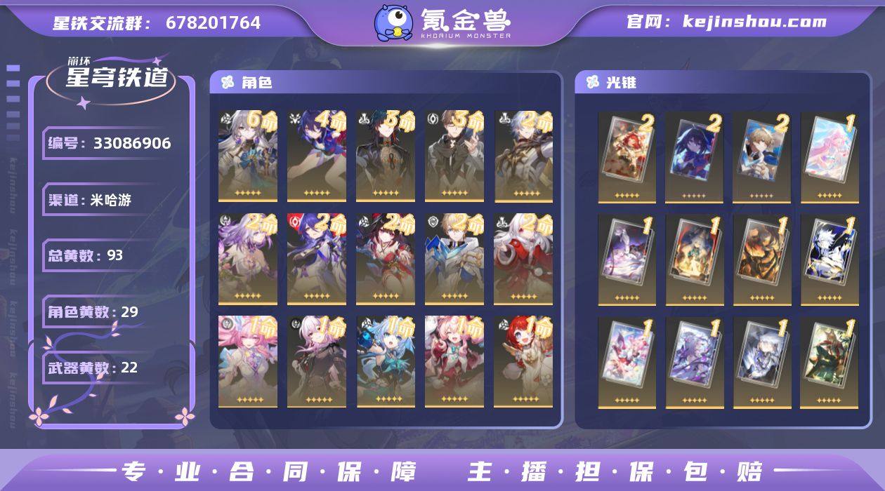 多关键命座,1+1昔涟,1+1长夜月,1+1刻律,1+1风槿,2+1白厄、瑕蝶和黄泉,1+1缇宝,0+1星期日,2+1花火