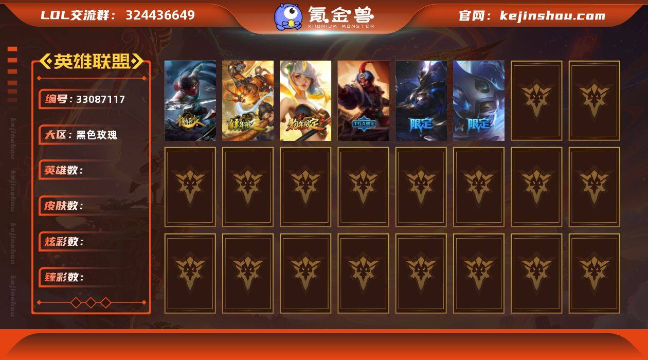 [18350810]1终极 66限定 29传说 86史诗 330皮肤 13炫彩 118英雄 可二次 可修改实名