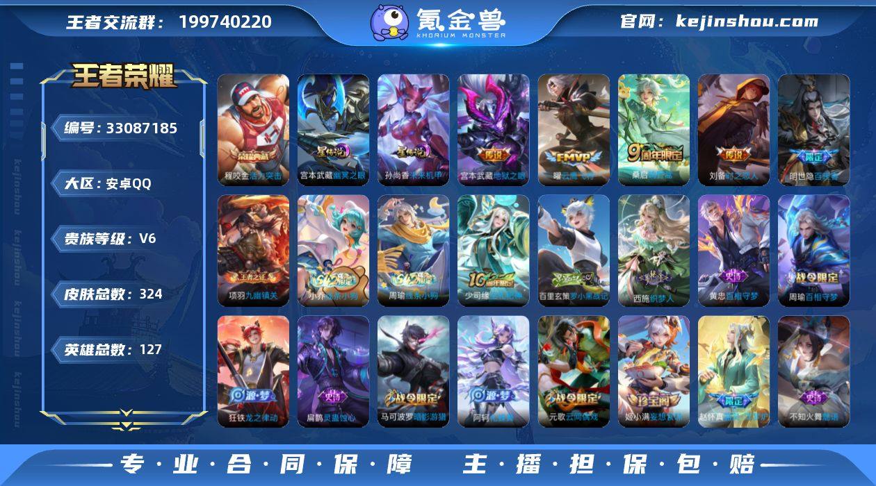 安卓Q-V6-至尊星耀III段位-127英雄-324皮肤-1典藏皮肤-4传说-73史诗 【英雄全皮】:孙权全皮,敖隐全皮,蒙恬全皮,空空儿全皮,影全皮 【荣耀典藏】:程咬金活力突击 【传说皮肤】:桑启鸣野蒿,曜云鹰飞将,刘备时之恋人,宫本武藏地狱之眼 【限定皮肤】:蒙犽顽岩魄,大乔绒语心约,姜子牙天穹之誓,杨戬破阵退雄兵,狄仁杰阴阳师,赵云皇家上将,元歌云间偶戏,元歌无心,马可波罗暗影游猎,狄仁杰魔术师,狄仁杰万华元夜,达摩沙漠行僧,项羽海滩派对,程咬金演武夺筹,兰陵王金庭之子,李元芳云中旅人,钟馗驱傩正仪,杨玉环遇见飞天,雅典娜黎明之约,鬼谷子原初探秘者,鬼谷子五谷丰年,苏烈千军破阵,百里玄策原初追逐者,梦奇顽趣,沈梦溪大漠名商,裴擒虎擒涛扼浪,上官婉儿梁祝,西施玲珑珍味,鲁班大师探海日志,桑启海盐诗旅,艾琳女武神,阿古朵江河有灵,张良古海寻踪,蒙犽百解令,蒙恬荣光圣徽,妲己灵卜魔法,鬼谷子天穹祈灯,姬小满妄想食味,沈梦溪龙舞盛年,刘邦剑破天穹,程咬金群星魔术团,镜青焰无极,项羽苍威无极,刘备异域游侠,周瑜熔金海岸 【赛季限定】:鬼谷子原初探秘者,狄仁杰万华元夜,程咬金演武夺筹,钟馗驱傩正仪,苏烈千军破阵,达摩...