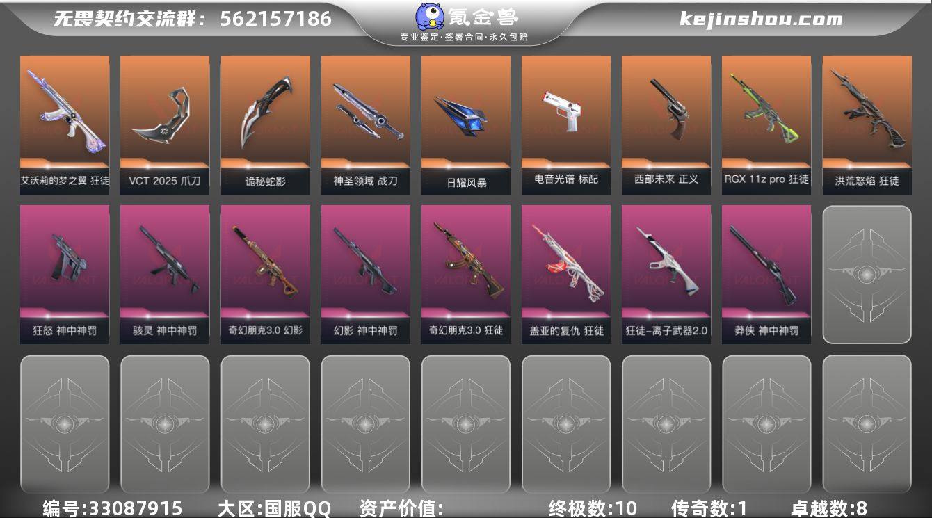 w4984 【性价比】奇幻3.0套 洪荒狂徒 显卡狂徒 猫猫狂徒 西部正义 电音标配 盖亚狂徒 神中套 离子2.0狂徒 神圣战刀 vct爪刀 库存:28910 剩余VP:75剩余R点: 50段位:黄金2历史最高:黄金2