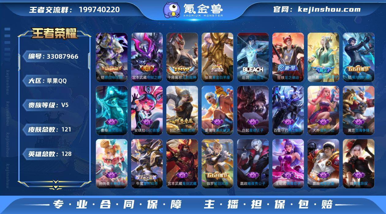 铠银白咏叹调-苹果Q-V5-永恒钻石I段位-128英雄-121皮肤-1典藏皮肤-5传说-29史诗 【英雄全皮】:敖隐全皮 【荣耀典藏】:铠银白咏叹调 【传说皮肤】:澜愿照九州拓,桑启鸣野蒿,张良黄金白羊座,干将莫邪久胜战神,宫本武藏地狱之眼 【限定皮肤】:蒙犽顽岩魄,姜子牙天穹之誓,狄仁杰阴阳师,赵云皇家上将,孙尚香蔷薇恋人,元歌无心,项羽海滩派对,裴擒虎擒涛扼浪,鲁班大师探海日志,张良古海寻踪,鬼谷子天穹祈灯,沈梦溪龙舞盛年,刘邦剑破天穹,程咬金群星魔术团,镜青焰无极,项羽苍威无极,周瑜熔金海岸 【年限皮肤】:澜愿照九州拓 【赛季限定】:裴擒虎擒涛扼浪,鲁班大师探海日志,张良古海寻踪,鬼谷子天穹祈灯,刘邦剑破天穹,姜子牙天穹之誓,东皇太一噬灭天穹,太乙真人谧流熔炉,钟馗虚灵犬护,甄姬逆浪荇歌,亚瑟荣光之誓,牛魔星界战将,项羽九幽镇关 【战令限定】:镜青焰无极,项羽苍威无极,周瑜线条小狗 【史诗皮肤】:周瑜线条小狗,项羽九幽镇关,女娲万灵启世,黄忠百相守梦,后羿石田雨龙,狂铁龙之律动,赵怀真器灵浮梦炉,牛魔星界战将,蒙犽顽岩魄,黄忠怒海争锋,镜青焰无极,镜玫瑰异探,元歌无心,狄仁杰鹰眼统帅,伽罗箭羽风息,大乔猫狗日...