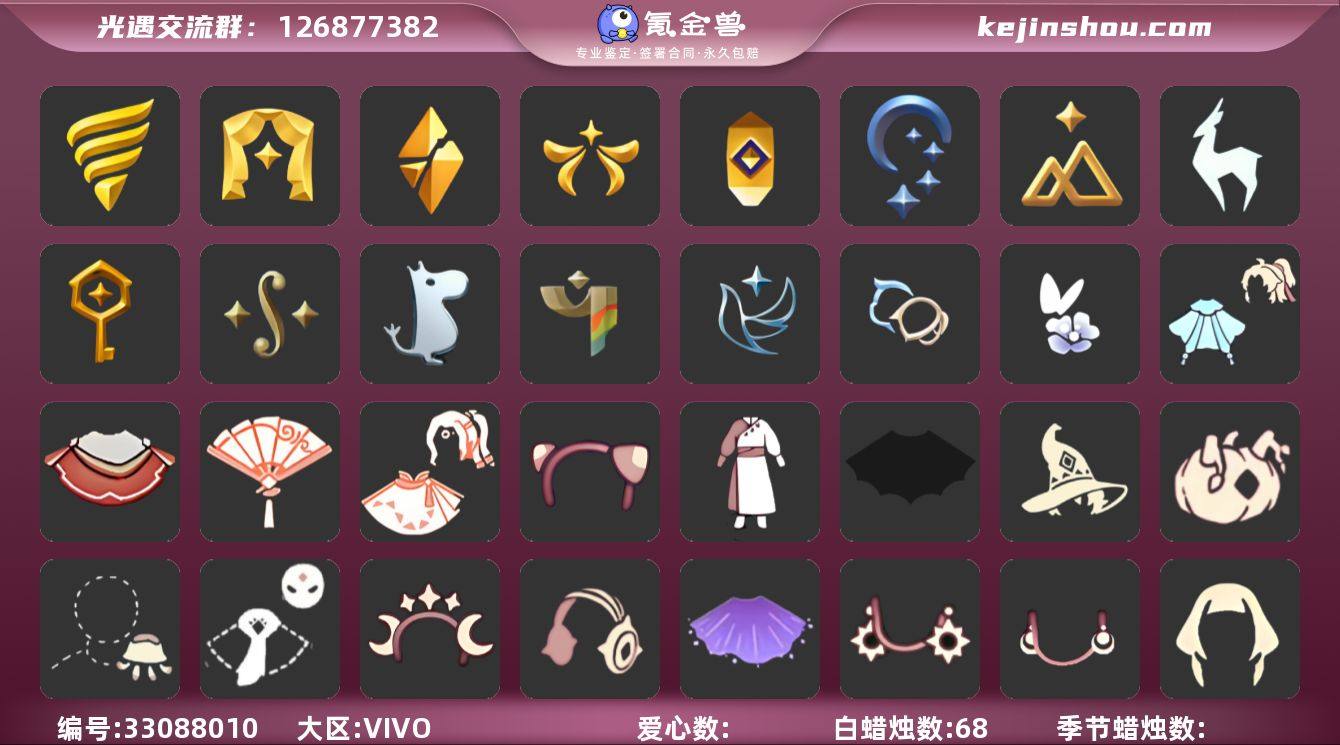 15季12翼帝企鹅发西部帽粗框眼镜季卡相机彩虹耳机巫师帽蝙蝠斗武士裤虚荣正太头 【毕业图】晨岛,云野,雨林,霞谷,暮土,禁阁 【毕业季】潜海季,表演季,破晓 季,欧若拉,追忆季,夜行季,拾光季,九色鹿,筑巢季,二重奏季,姆明季,彩染季,青鸟季,双星季,迁徙季 【蜡烛】68 【爱心】23 【稀有礼包】瑞气服饰,龙鳞束身长袍,星月头冠,神鹿祝福礼包,彩虹耳饰,彩虹耳机,圣诞鹿角,大蝴蝶结,水母肩饰,夏日有友礼包,奔离远行发,巫师帽,贝壳发饰,雪花发夹,玉兔发饰,创始人斗篷,异彩莲花斗篷,盘龙围巾斗篷,蝙蝠斗,透明蜘蛛斗,浪漫流星斗篷,绊爱礼包,音韵吉他,欧若拉之声,瑞气纸伞,情人秋千,情人跷跷板,小憩茶桌,冥龙南瓜,猫咪背饰,满月耳坠,日光耳环,献瑞折扇礼包,衔福献瑞礼包,大橘大利,南瓜头,粽子发饰,青衫落拓礼包,金鳞耳饰,缤纷飘带斗篷,蝴蝶与花发饰,小海牛配饰,小黄鸭发饰,福娃礼包,年年有鱼礼包,鸦羽兜帽,皮皮猫套装,雪人头饰,幸运亨通眼镜,宝骏丹心马尾,骐骥迎福 【毕业物品】潜水面具,单边小辫,维京斗篷,帝企鹅发,黄眉企鹅面具,燕尾斗篷,双翼遥鲲斗,冥龙斗篷,留辫蘑菇头,高领舞服,透明蝶翼斗,肩带,...